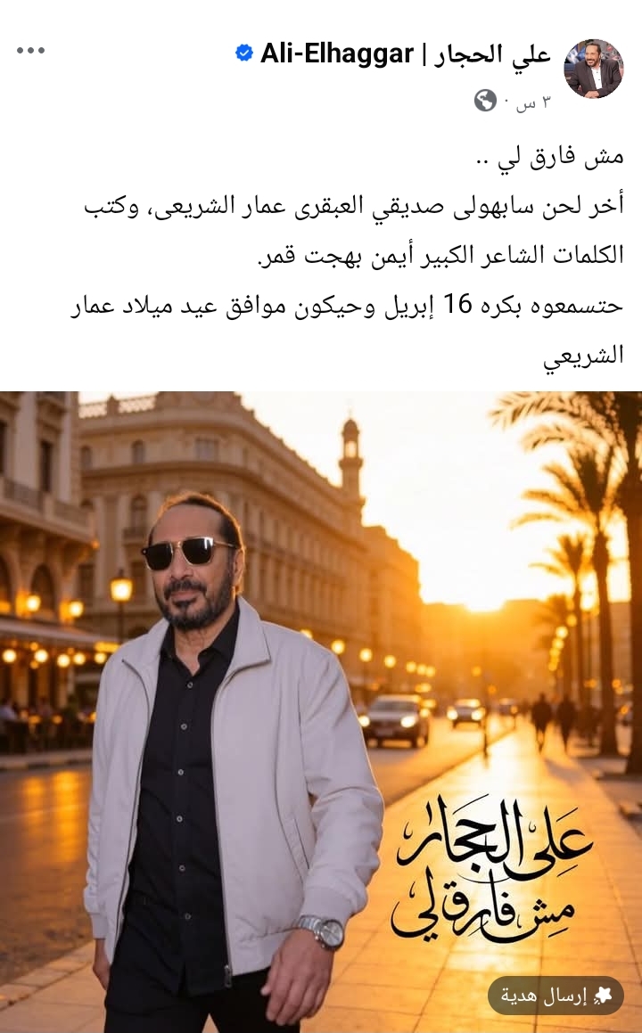 يذكر أن المطرب الكبير علي الحجار، يواصل تسجيل أغنيات ألبومه الجديد الذي يعمل عليه منذ 3 سنوات، والمقرر أن ينتهي منه ويطرحه مع نهاية هذا العام