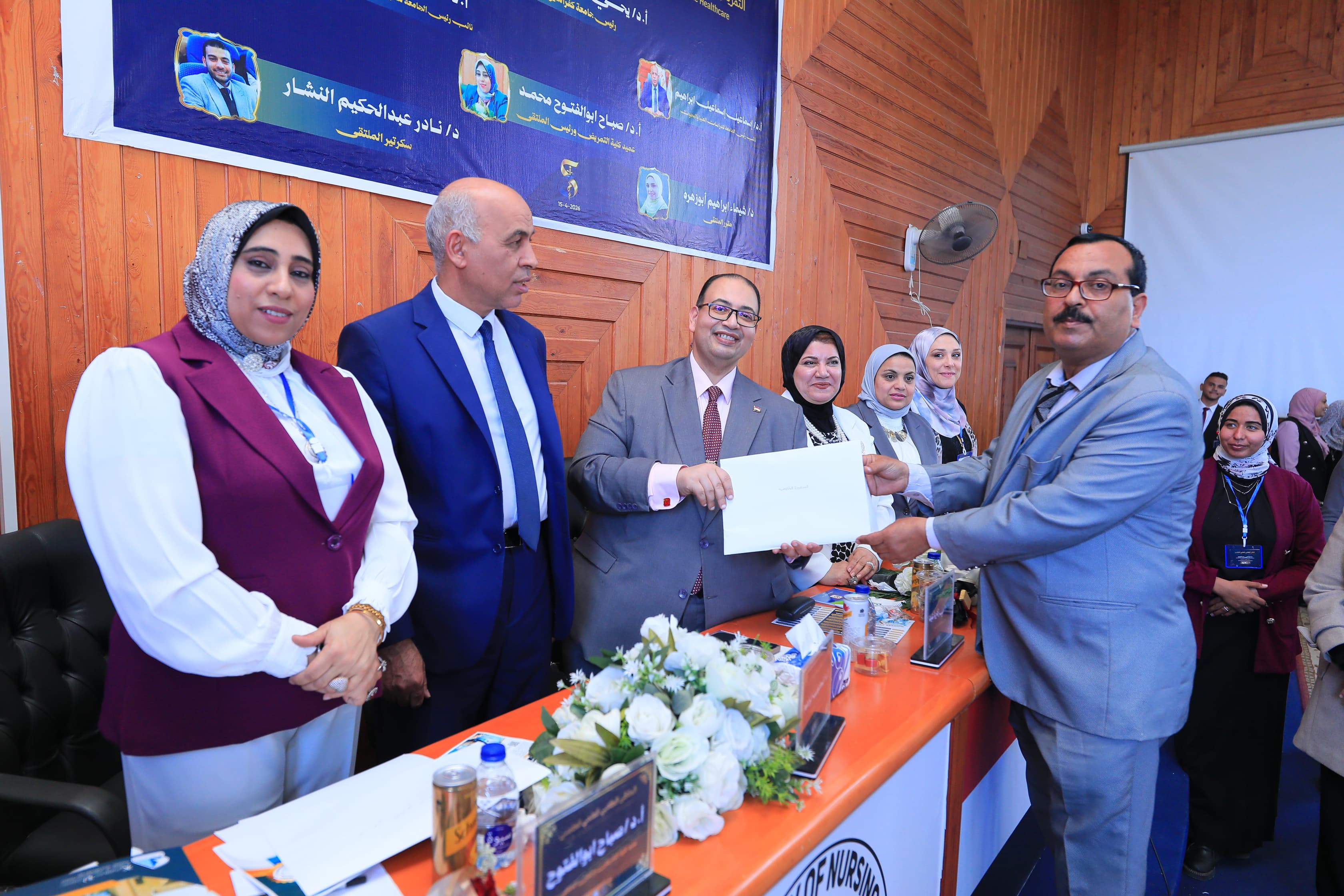 جاء ذلك بحضور الدكتور إسماعيل إسماعيل إبراهيم نائب رئيس الجامعة للدراسات العليا والبحوث، والدكتور أماني محمد شاكر نائب رئيس الجامعة لشئون خدمة المجتمع وتنمية البيئة، والدكتور صباح أبو الفتوح محمد عميد كلية التمريض، إلى جانب نخبة من أعضاء هيئة التدريس والباحثين والطلاب من مختلف الجامعات المصرية.