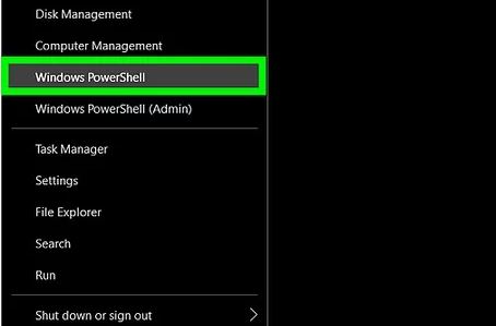 اضغط على علامة “الويندوز” ثم اختر بزر الماوس الأيمن على خيار Windows PowerShell، سيفتح لك خانة أوامر.
