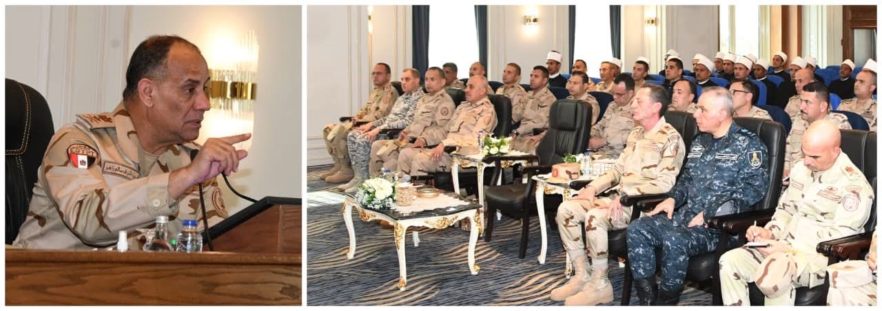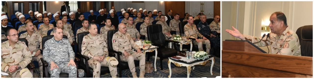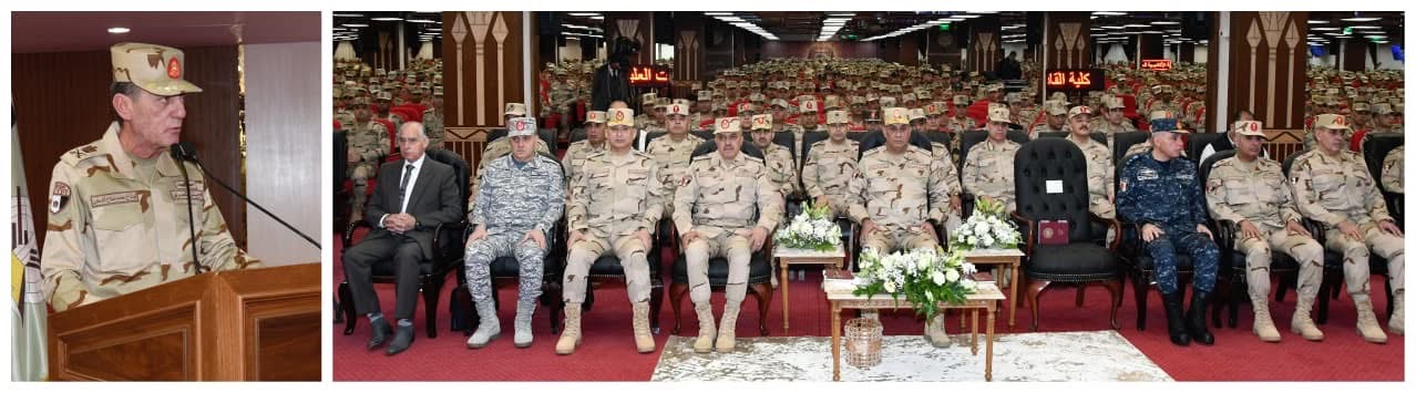 وكلية القادة والأركان والمعاهد العسكرية التخصصية وطلبة الأكاديمية العسكرية المصرية وطلبة الكليات العسكرية عبر تقنية الفيديو كونفرانس ، وذلك بحضور الفريق أحمد خليفة رئيس أركان حرب القوات المسلحة وقادة الأفرع الرئيسية وعدد من قادة القوات المسلحة .