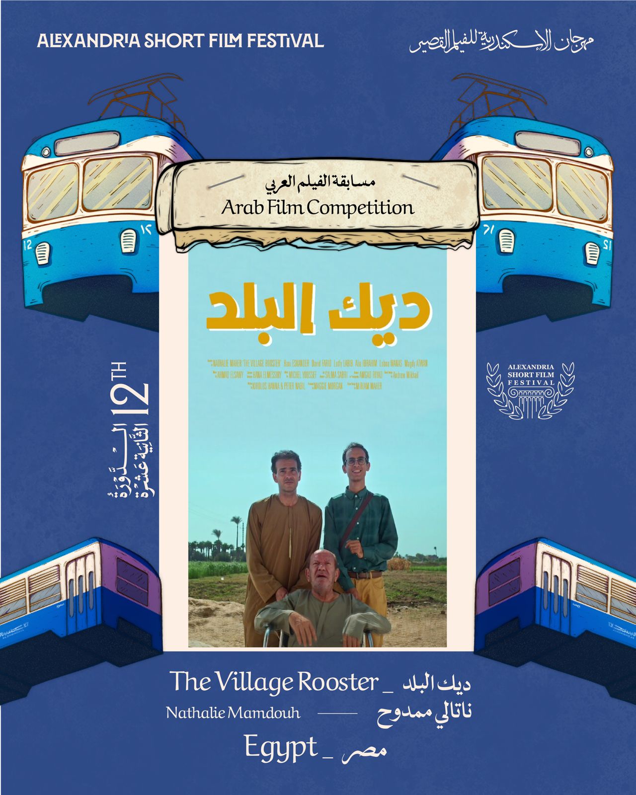 أعلنت إدارة مهرجان الإسكندرية للفيلم القصير القائمة الكاملة لأفلام المسابقة العربية، المشاركة خلال فعاليات النسخة الثانية عشر، المقرر انطلاقها في الفترة من 27 إبريل لـ 2 مايو المقبل، إذ تضم 8 أفلام متنوعة من بلدان مختلفة.