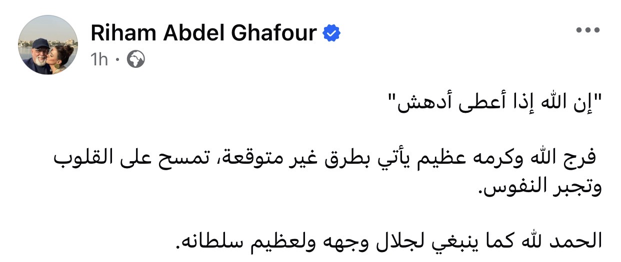 وكتبت ريهام عبدالغفور: "إن اللّٰه إذا أعطى أدهش"