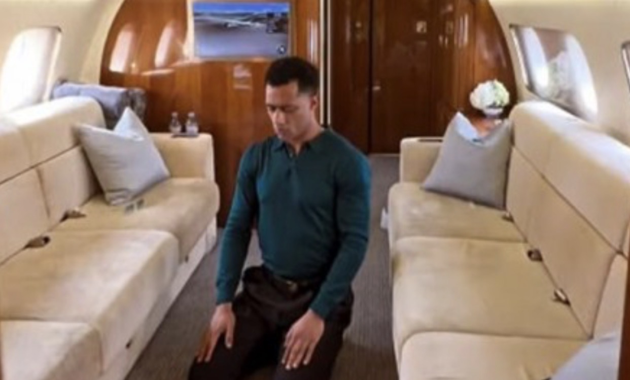ورغم هذا التصريح، سبق وأن نشر رمضان في مايو 2025 مقطع فيديو من داخل طائرته الخاصة خلال سفره إلى السعودية ظهر فيه وهو يؤدي الصلاة، كما عاد ونشر في أبريل 2026 صورة جديدة له أثناء الصلاة داخل المطار وعلق عليها بأنها “صورة يعتز بها”.