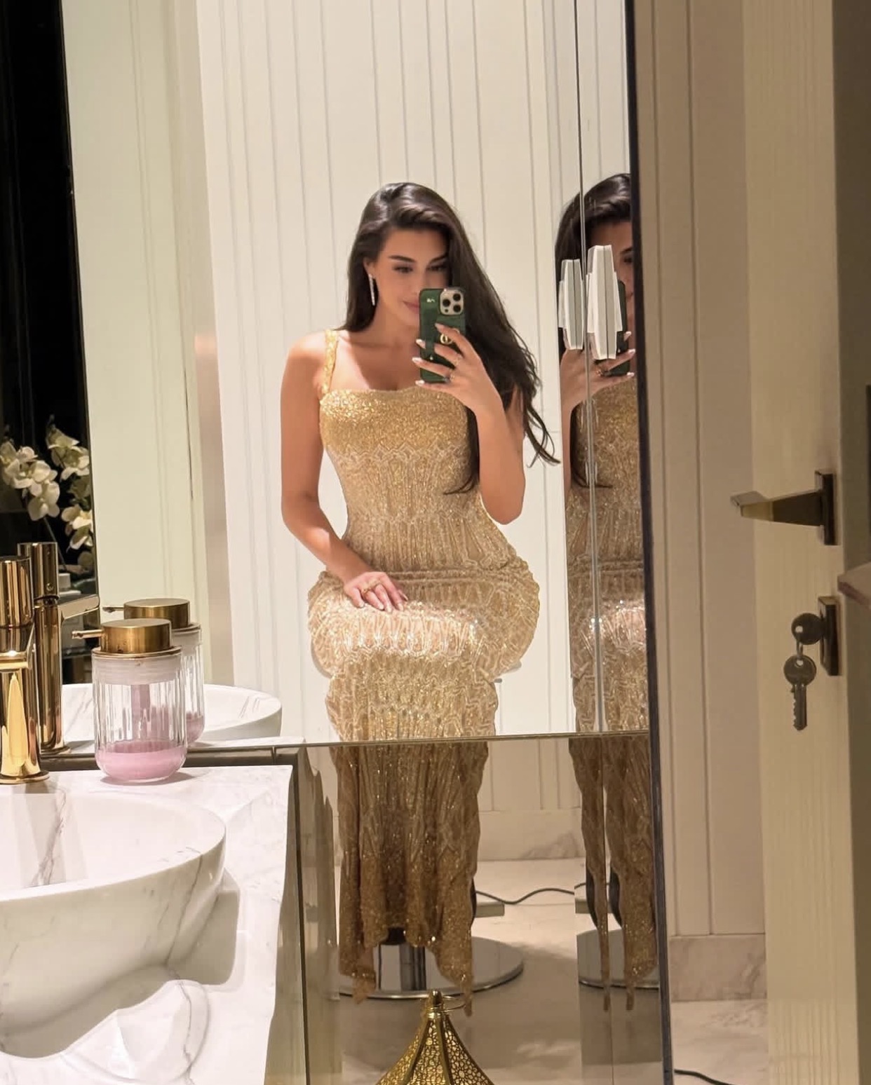 وظهرت ياسمين صبري مرتدية فستانًا طويلًا باللون الذهبي اللامع، جاء بتصميم ضيق يبرز رشاقتها وقوامها، مع تفاصيل براقة أضفت لمسة فخامة وجاذبية على الإطلالة، وهو ما اعتادت عليه في اختياراتها التي تميل دائمًا للستايل الكلاسيكي الفخم.