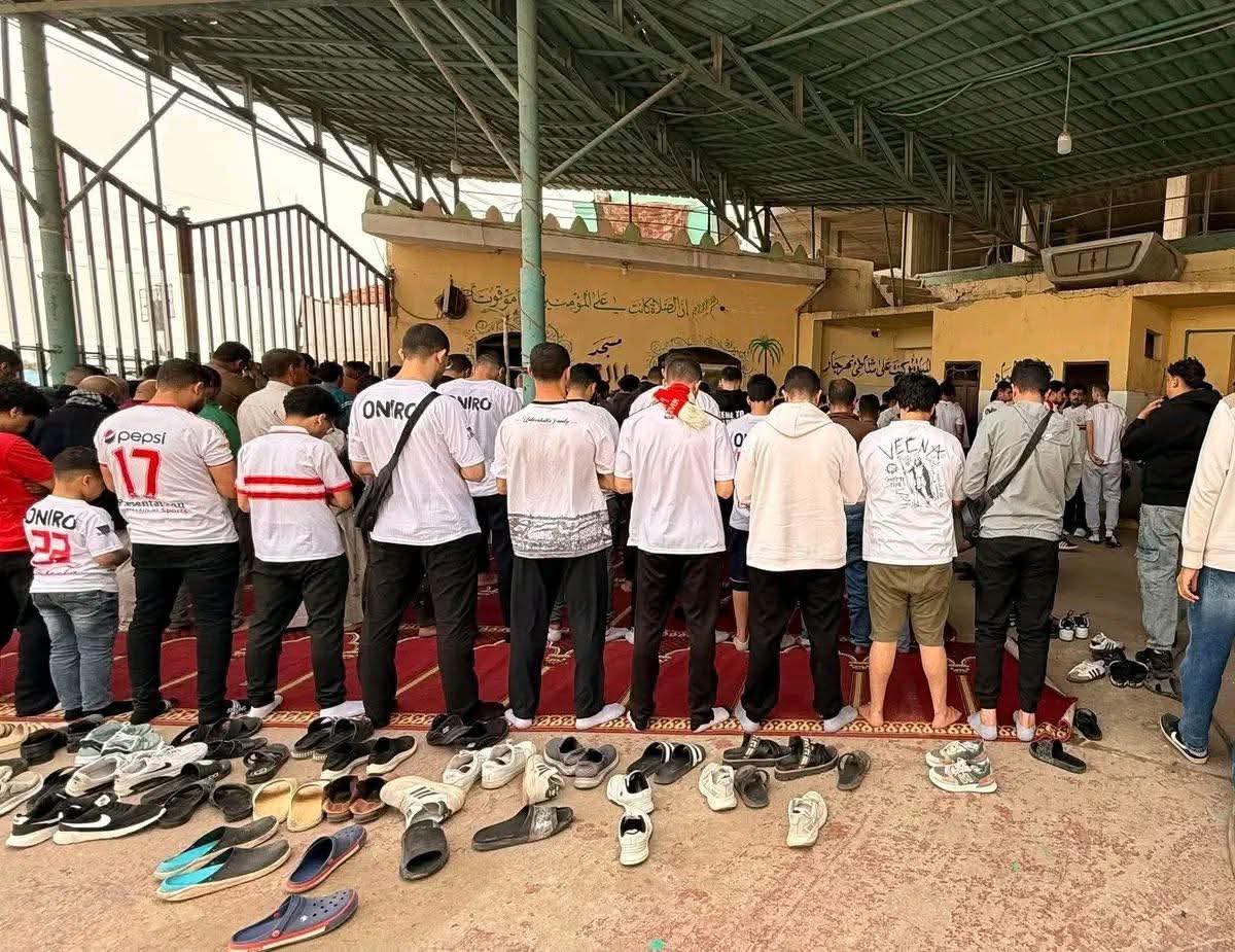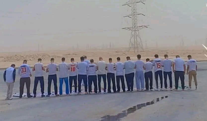 و ظهرت جماهير الزمالك وهي تصلي على الطريق أثناء طريقهم إلى استاد القاهرة الدولي، لدعم لاعبي الزمالك قبل ساعات من مواجهة شباب بلوزداد.