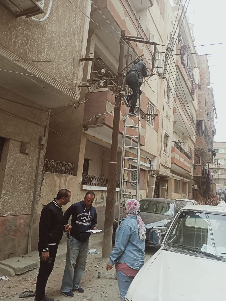 تابع هيثم صادق رئيس حي شرق شبين الكوم في محافظة المنوفية إجراءات فصل مرفق الكهرباء عن العقارات المخالفة بحضور امل عصام نائب رئيس الحي.