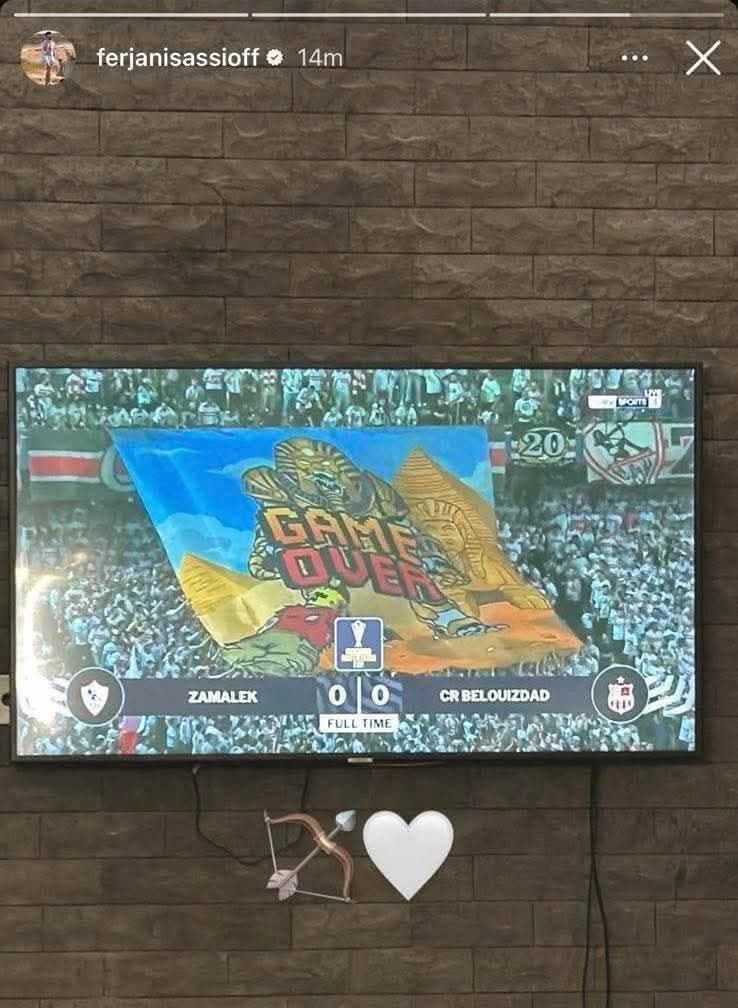 ونشر نجم منتخب تونس عبر حسابه على «إنستجرام»: «صورة لجماهير الزمالك بعد التأهل لنهائي الكونفيدرالية بتعليق جيم اوفر "
