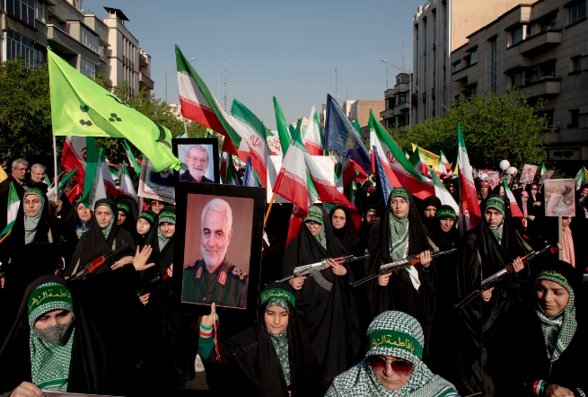 وفي مقاطع فيديو بثتها وسائل الإعلام الرسمية، ظهرت نساء يحملن أسلحة، ويرفعن الأعلام، ويرددن هتافات مناهضة للولايات المتحدة.