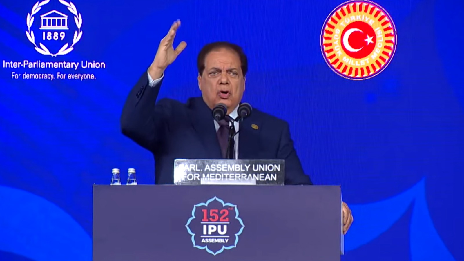 وأشار النائب محمد أبو العينين، رئيس الجمعية البرلمانية للاتحاد من أجل المتوسط، خلال كلمته بمؤتمر البرلمان الدولي المنعقد في تركيا إلى أن البرلمانات مطالبة اليوم بتقديم رسائل طمأنة لشعوبها، عبر تبني أفكار جديدة وخطط طموحة، والعمل على صياغة رؤية دولية مشتركة يشارك فيها البرلمانيون من مختلف الدول، بما يسهم في تصحيح المسار ومعالجة الأخطاء التي يشهدها النظام العالمي.