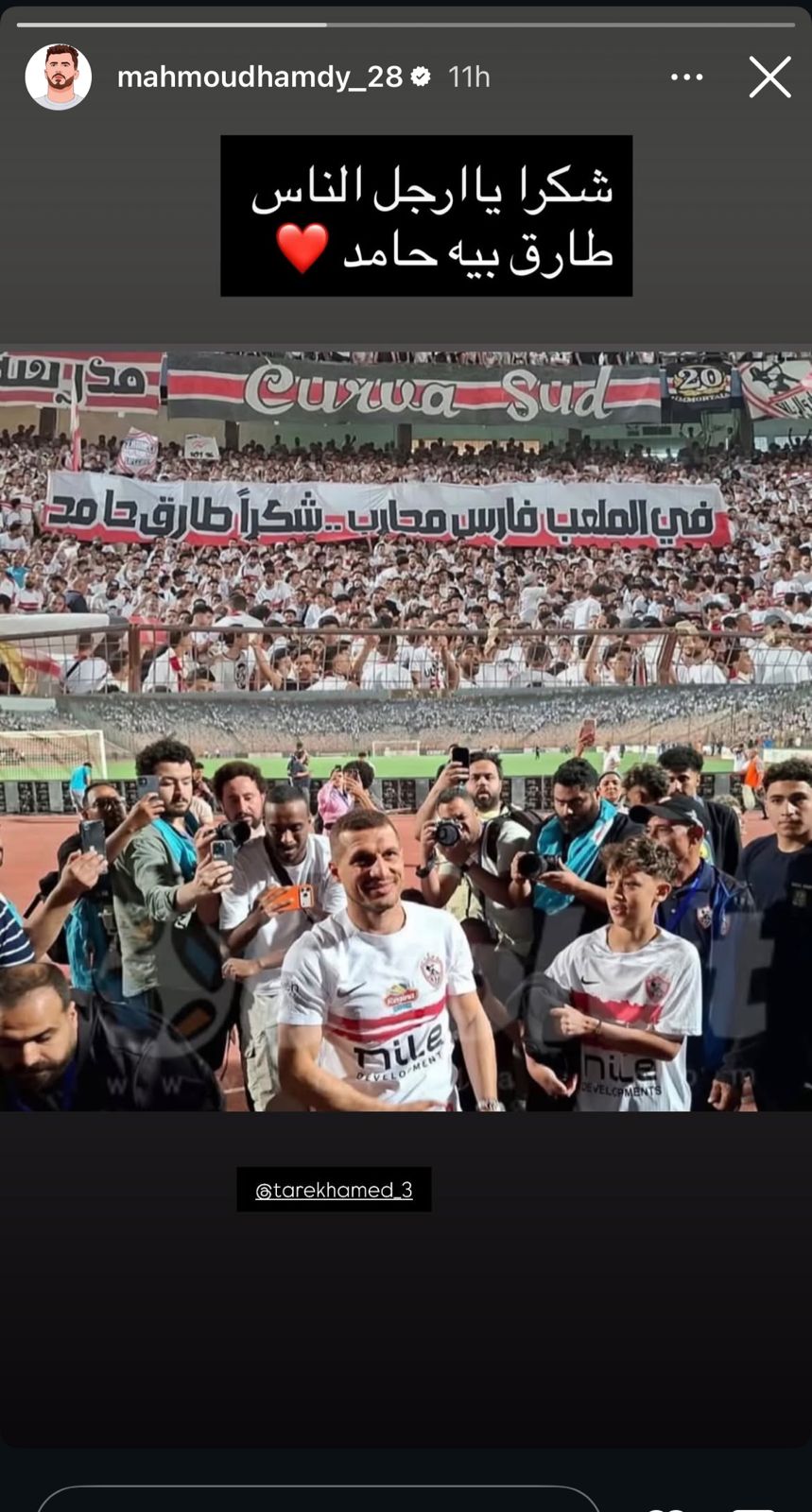 وكتب الونش عبر ستوري انستجام: “شكرا يا ارجل الناس طارق بيه حامد”.
