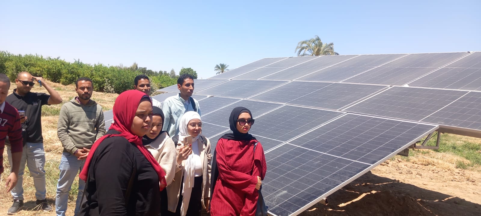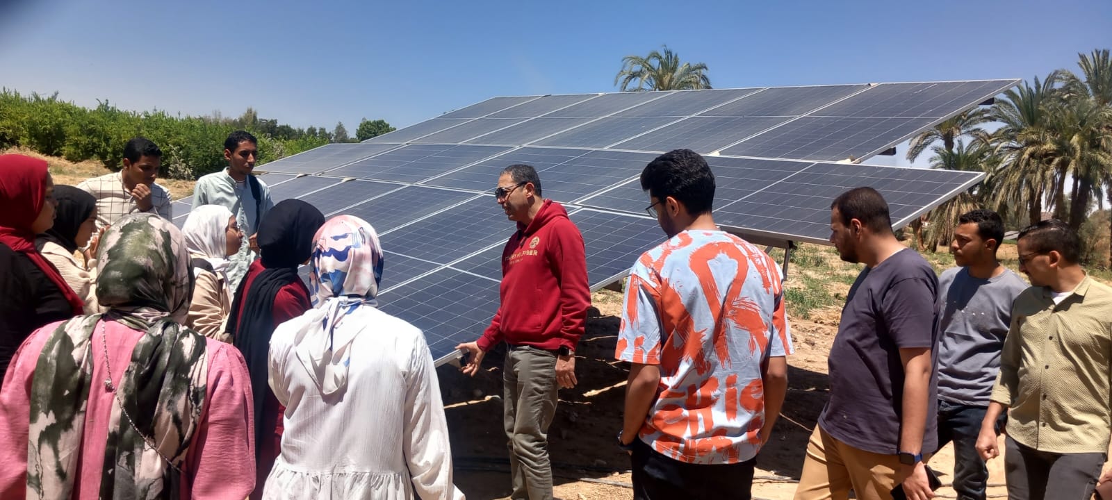 أجرى فريق البرنامج التدريبي المتخصص في تركيب وصيانة الألواح الشمسية، زيارة ميدانية موسعة لعدد من المزارع التي تعتمد كليًا على الطاقة الشمسية، بنطاق محافظة قنا، في إطار التطبيق العملى للبرنامج الدراسى، بما يحقق ربط فعلى للتدريب بسوق العمل.