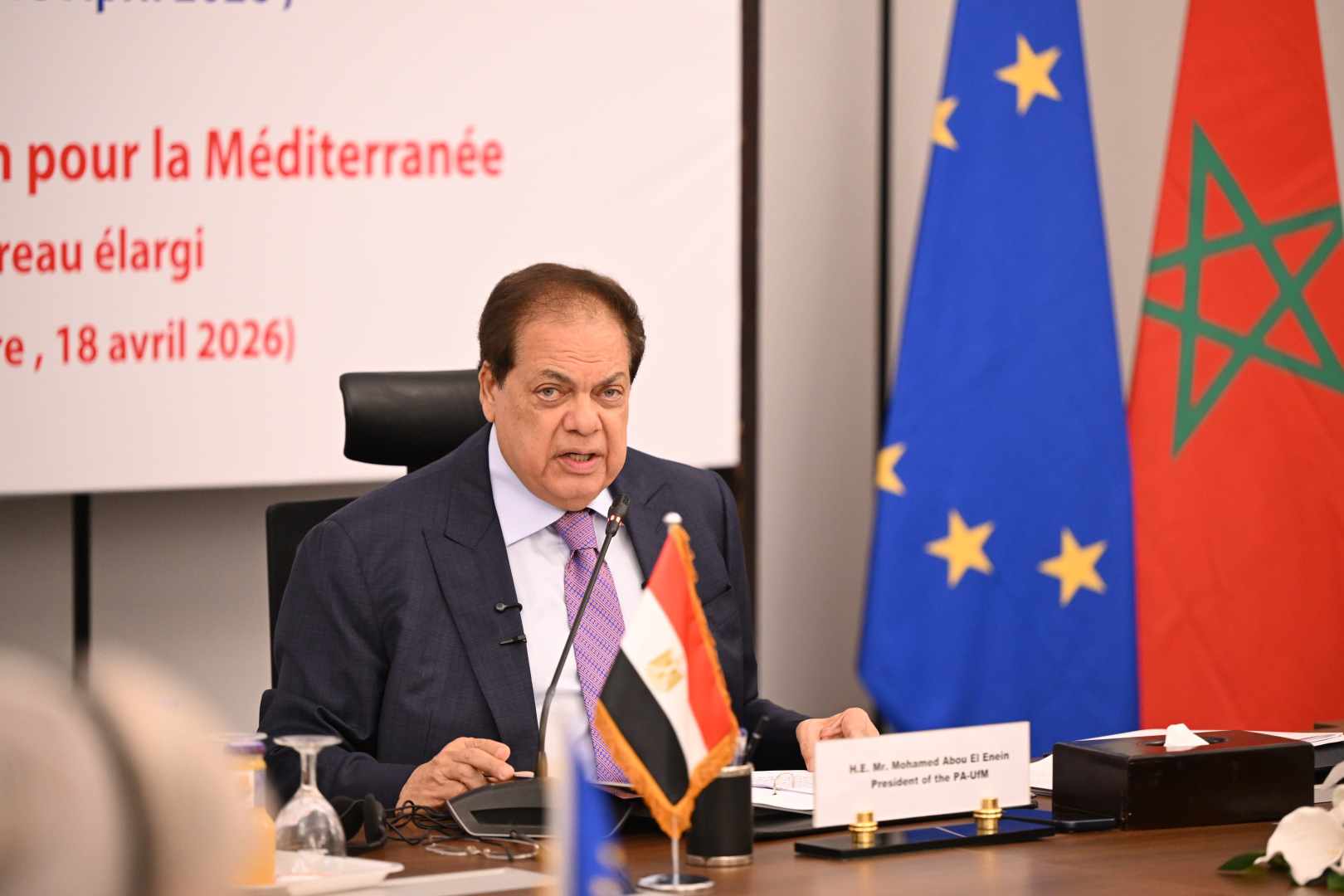 رحّب النائب محمد أبو العينين ، رئيس البرلمان من أجل المتوسط، بالمشاركين في اجتماع هيئة المكتب والمكتب المُوسّع للجمعية البرلمانية للاتحاد من أجل المتوسط، الذي يُعقد بمقر مجلس النواب في العاصمة الإدارية الجديدة.