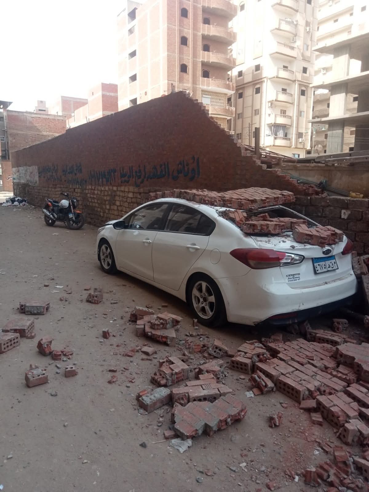 تابع هيثم صادق رئيس حي شرق في شبين الكوم في محافظة المنوفية شكوى بشأن سقوط سور على إحدى السيارات بنطاق الحي .