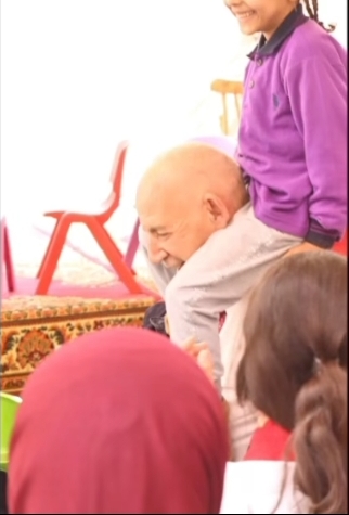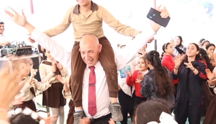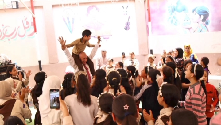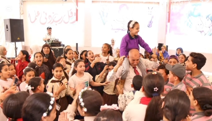 وظهر مدير المدرسة وهو يحمل الأطفال على أكتافه ويشاركهم أجواء البهجة والمرح، في محاولة لرسم الابتسامة على وجوههم وإدخال السعادة إلى قلوبهم خلال الاحتفال.