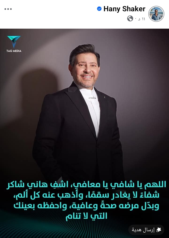 وكتب قائلًا: «اللهم يا شافي يا معافي، اشفِ هاني شاكر شفاءً لا يغادر سقمًا، وأذهب عنه كل ألم، وبدّل مرضه صحةً وعافية، واحفظه بعينك التي لا تنام».