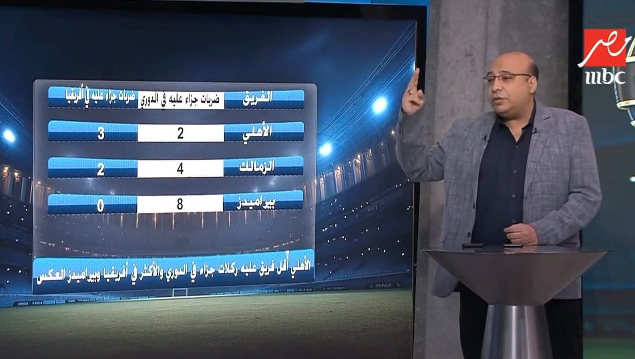 كشف الناقد الرياضي مفاجأة بشأن أرقام الفارق بين التحكيم المصري والتحكيم الأفريقي لفرق القمة الثلاثة الأهلي والزمالك وبيراميدز .