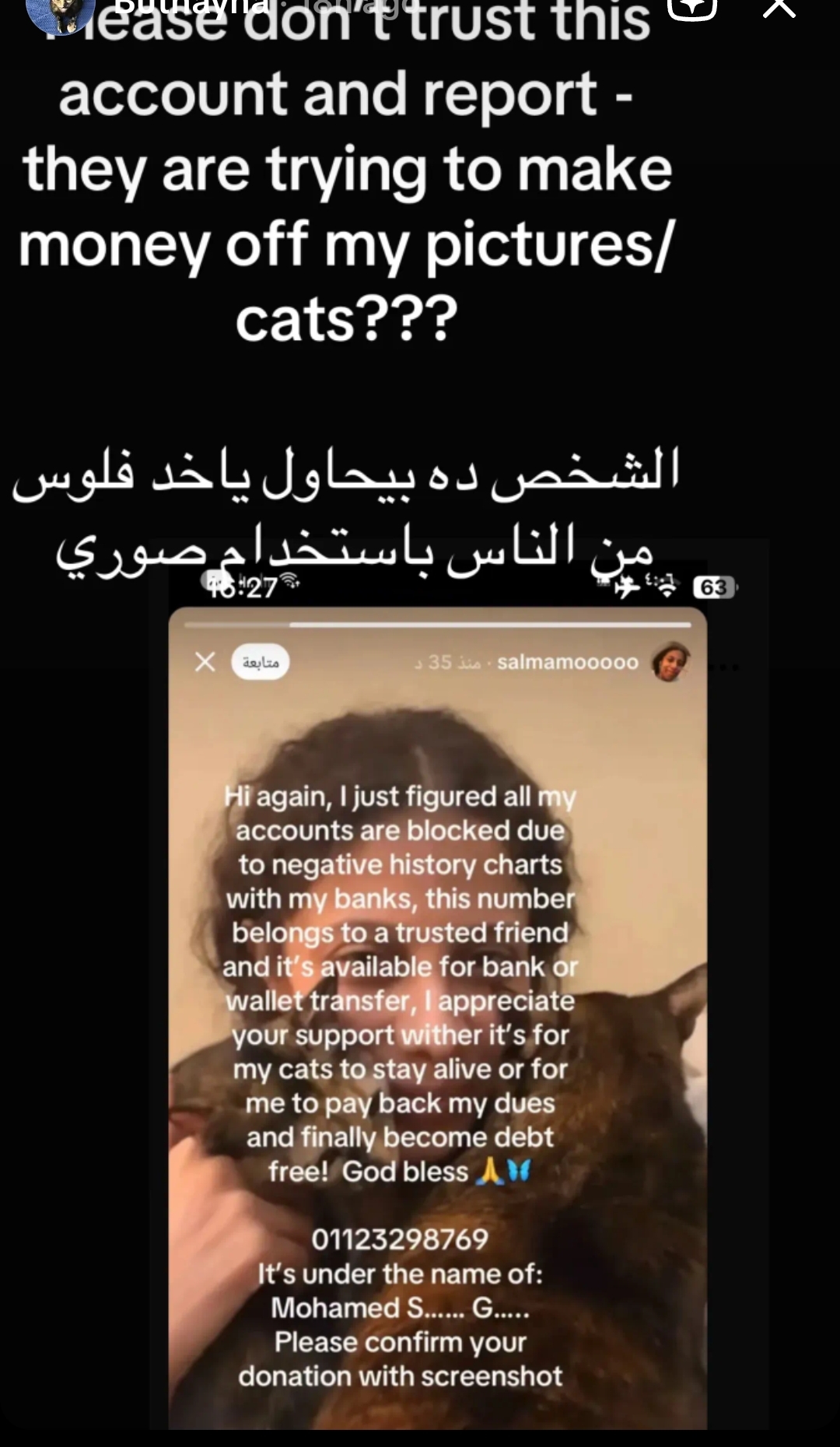 وقالت بثينة علي الحجار، إنها ليس لديها سوى حساب واحد على تيك توك، وأن هناك شخص ينتحل شخصيتها ويطلب تبرعات على رقمه الشخصي.