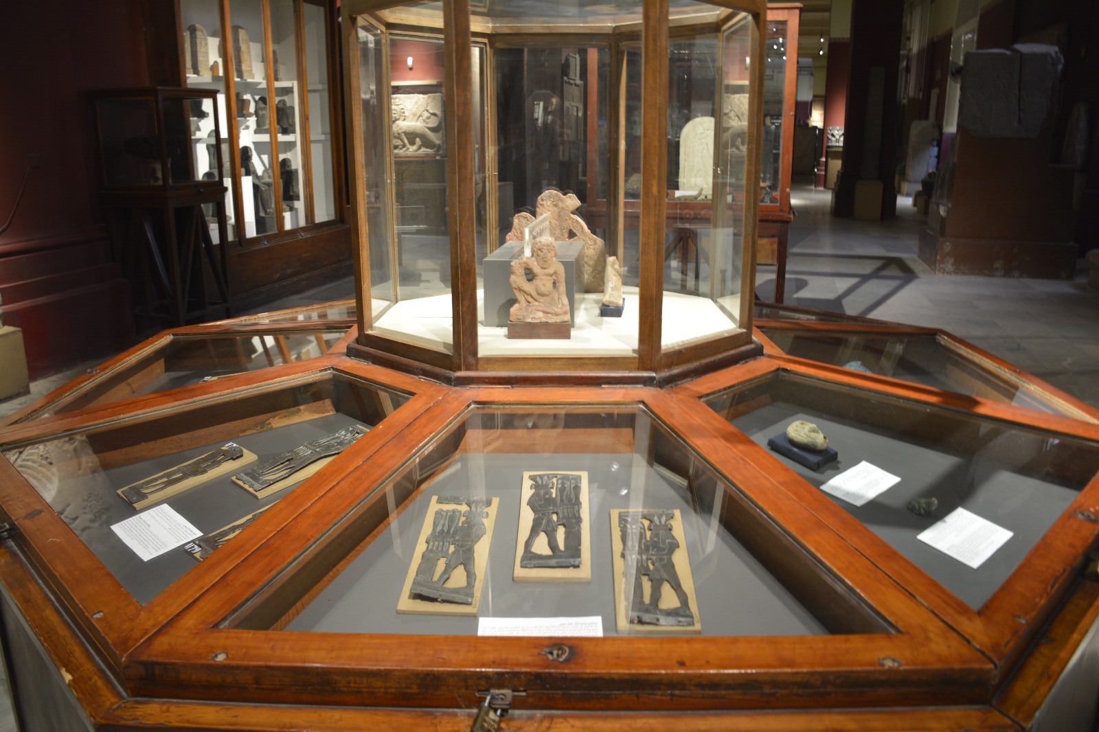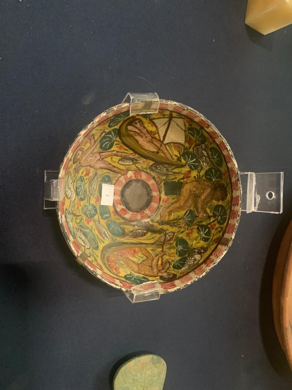 ومن أبرز المعروضات أجزاء زخرفية تمثل عناصر نباتية وسمكية، وأوانٍ فخارية مزخرفة، ومخطوطات دينية مرتبطة بالمياه، إلى جانب قطع تعكس الرمزية الدينية والبيئية للنهر.