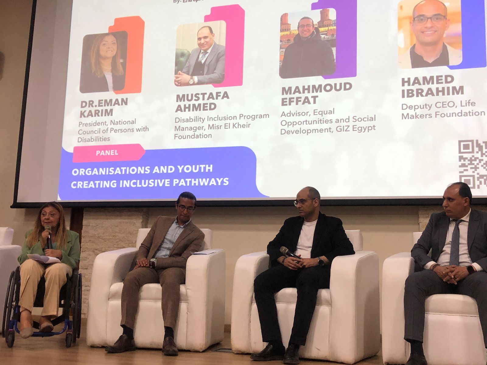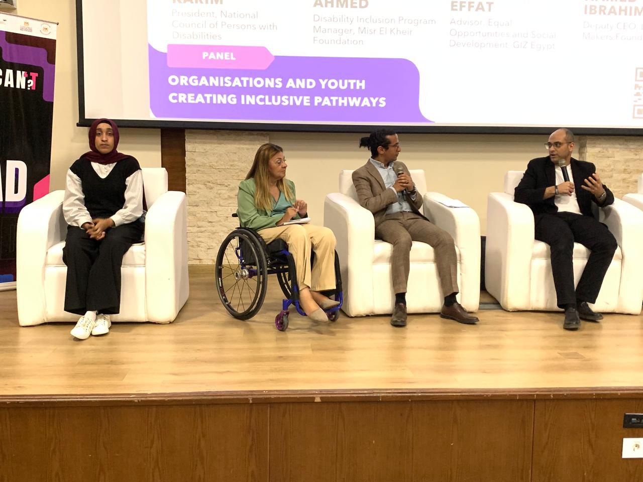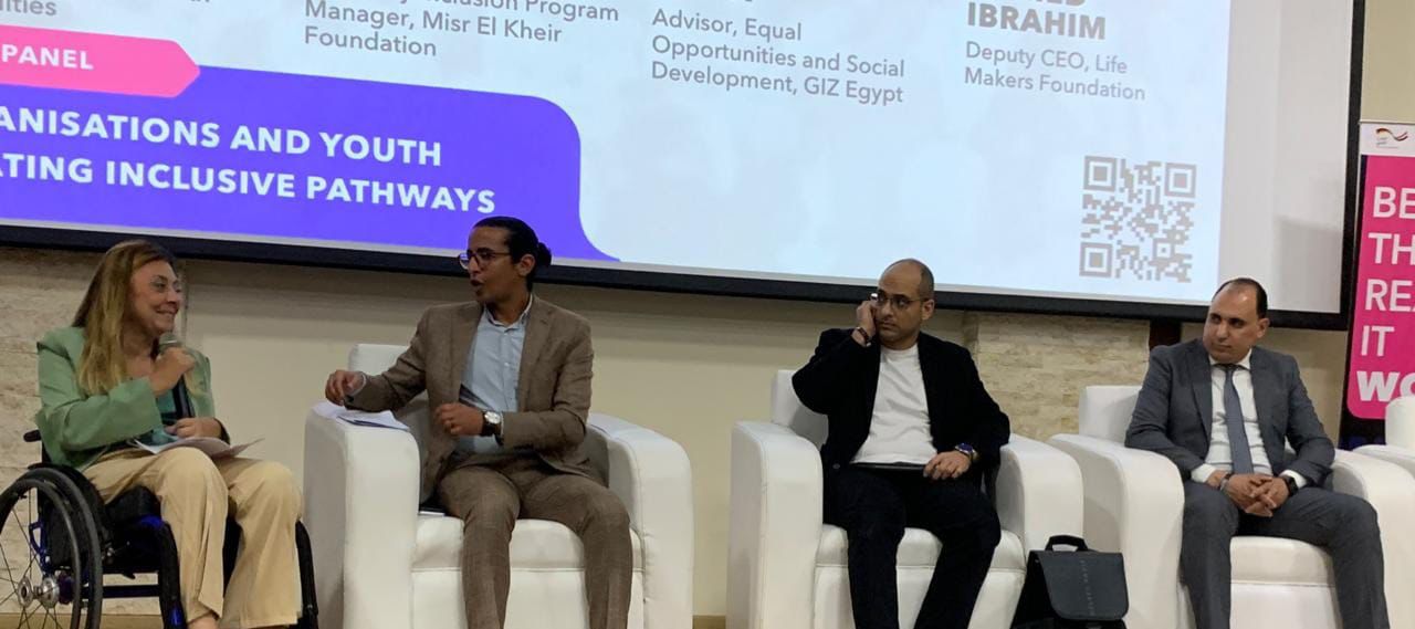 جاء ذلك خلال مشاركتها في جلسة نقاشية عن "المؤسسات والشباب وصناعة مسارات دامجة" والتي أدارها محمود عفت، مستشار تكافؤ الفرص والتنمية الاجتماعية بالوكالة الألمانية للتعاون الدولي (GIZ) مصر، وبمشاركة حامد إبراهيم، نائب الرئيس التنفيذي لمؤسسة صناع الحياة، ومصطفى أحمد، مدير برنامج الدمج بمؤسسة مصر الخير، وذلك ضمن فعاليات مؤسسة (She Can).