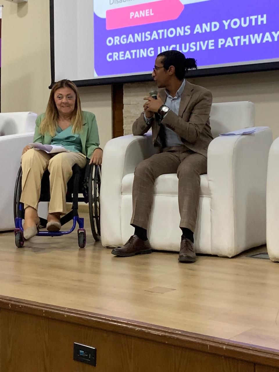 وقد تناولت الجلسة سبل تعزيز التعاون بين مختلف الأطراف المعنية لدعم قضايا الدمج، والعمل على إزالة الحواجز التي تواجه الأشخاص ذوي الإعاقة، بما يسهم في خلق مسارات متكاملة وقابلة للتوسع في مجالات التعليم، والتوظيف، والمشاركة المجتمعية، في إطار رؤية تقوم على الشراكة والتكامل بين مؤسسات الدولة والمجتمع المدني والشباب.
