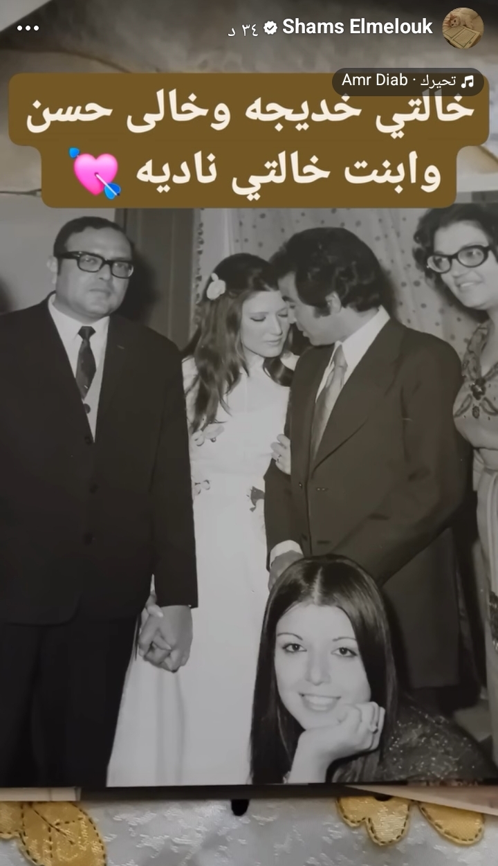 وعلقت شمس البارودي، على الصور التي نشرتها عبر حسابها بموقع التواصل الاجتماعي "فيسبوك"، قائلة: "خالتى خديجة وخالي حسن وابنة خالتى نادية"