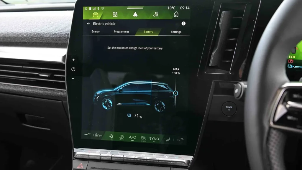 زودت سيارة رينو سينيك إي-تك موديل 2026 بالعديد من المميزات من ضمنها، نظام المعلومات الترفيهي القائم على جوجل، وبها واجهة بمصابيح LED حادة، وبها تصميم انسيابي يقلل من مقاومة الهواء، وبها عجلات معدنية كبيرة مقاس 20 بوصة، وبها شاشة مزدوجة مقاس 12 بوصة على لوحة القيادة، وبها مساحات تخزين ذكية تتجاوز 38 لتر، وبها سقف بانوراما تفاعلي سولارباي .