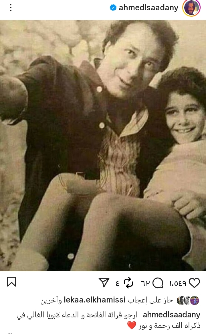 ونشر أحمد السعدني عبر حسابه على موقع «إنستجرام» صورة نادرة تجمعه بوالده، وكتب: «أرجو قراءة الفاتحة على والدي والدعاء له في ذكراه.. ألف رحمة ونور».