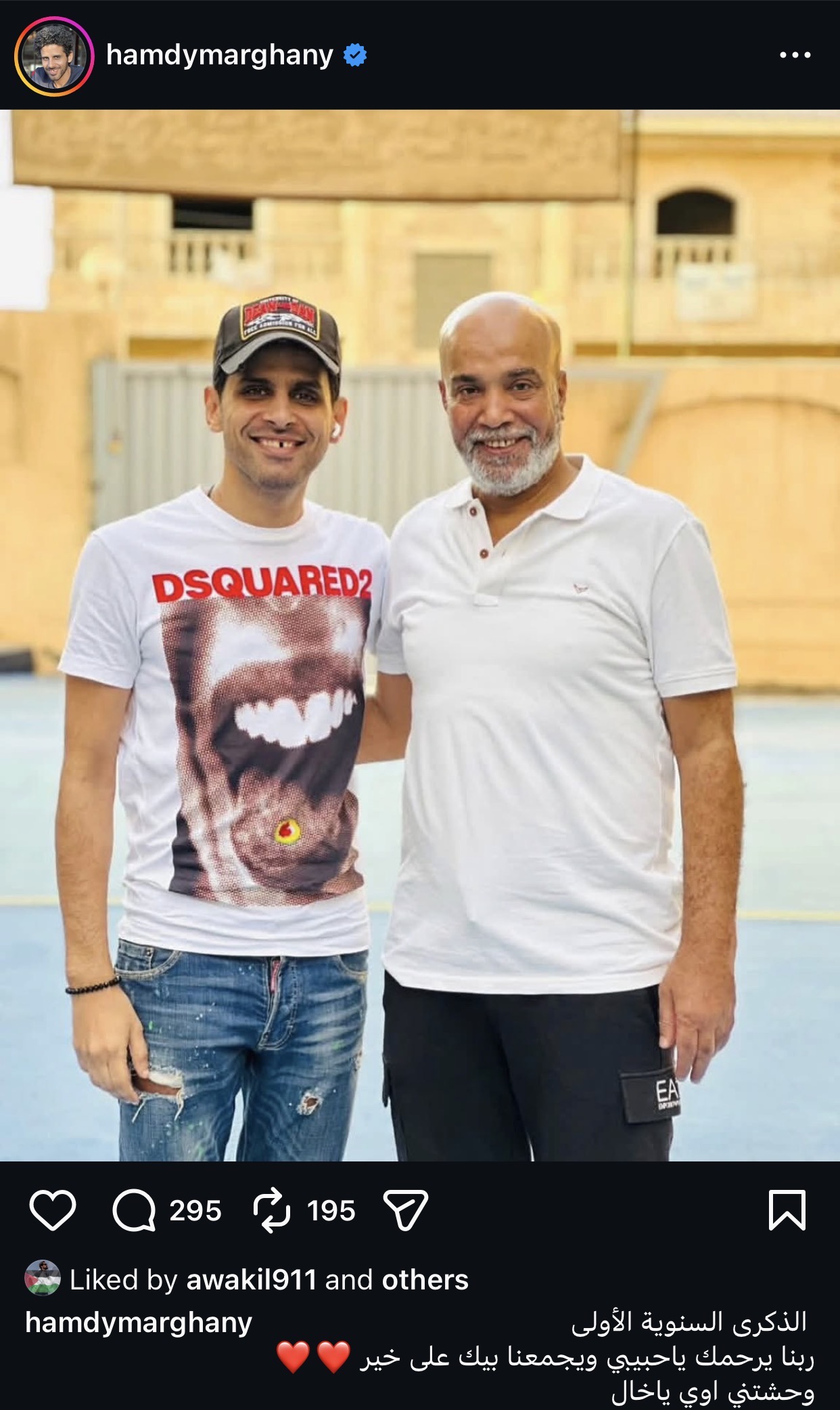وكتب قائلاً: “الذكرى السنوية الأولى 18/04/2026.. عدت سنة على فراقك يا أبي وكأن كل شيء كان بالأمس، كل شيء بلا طعم من دونك”، مضيفاً: “ربنا يرحمك يا طيب يا أحسن أب في الدنيا ويجمعنا بيك على خير”.