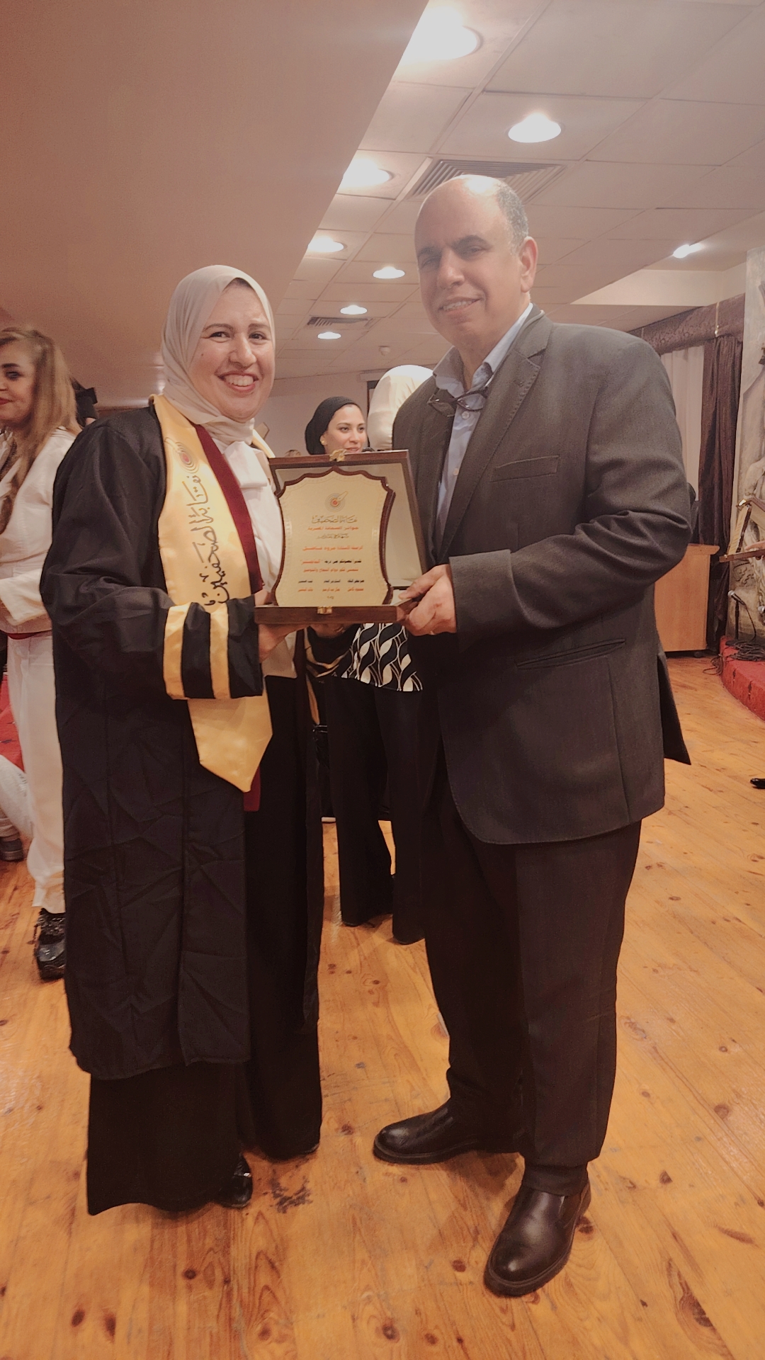 وجاء التكريم في أجواء احتفالية مميزة، بحضور عدد من أعضاء مجلس النقابة ونخبة من الصحفيين، حيث تم الإشادة بأهمية الجمع بين العمل المهني والتأهيل الأكاديمي، باعتباره أحد ركائز تطوير الأداء الصحفي والارتقاء بالمحتوى الإعلامي.