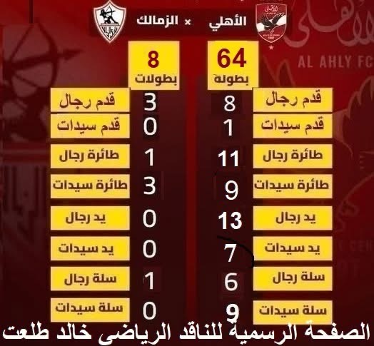 وكتب خالد طلعت عبر حسابه بموقع التواصل الإجتماعي فيسبوك: “بطولات الأهلي والزمالك في آخر 3 مواسم .. 64 بطولة للأهلي ، والزمالك يحصد البطولة الثامنة”. بالأمس".