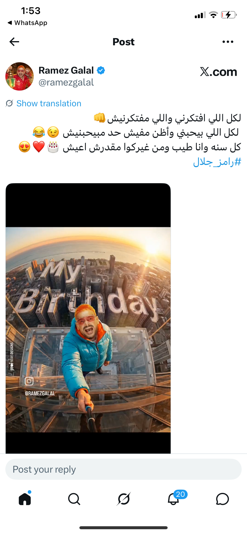 وكتب رامز جلال، عبر حسابه على «اكس»: “لكل اللى افتكرنى واللى مفتكرنيش لكل اللى بيحبنى وأظن مفيش حد مبيحبنيش كل سنة وانا طيب ومن غيركوا مقدرش أعيش”.
