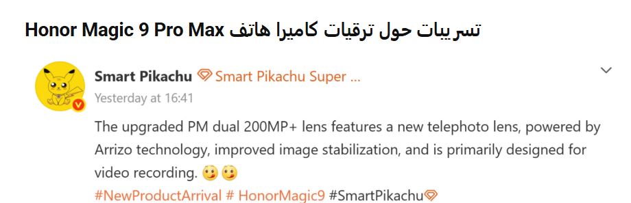 تسريب معلومات عن هاتف Honor Magic 9 Pro Max من قِبل Smart Pikachu