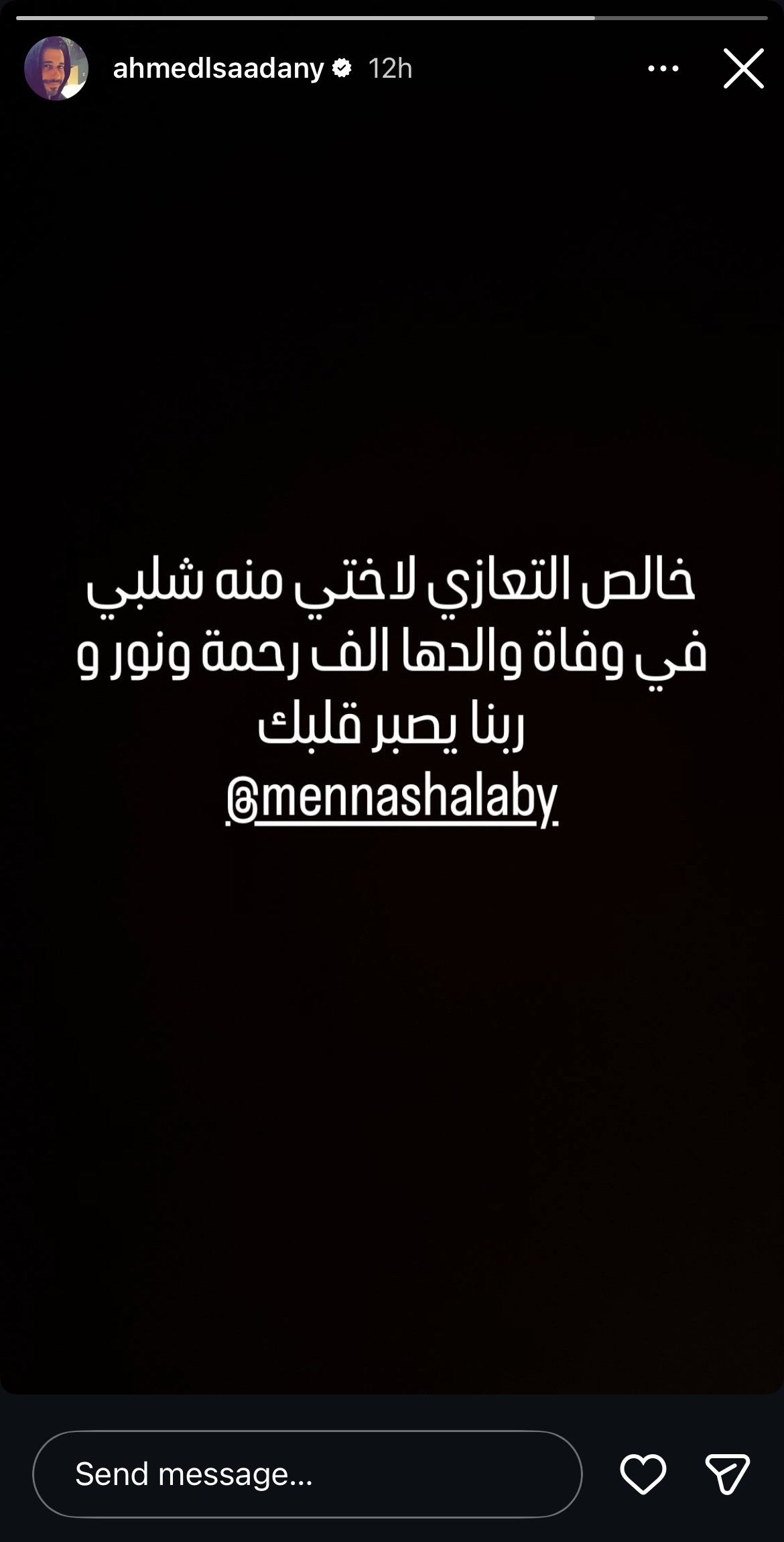 وكتب السعدني عبر حسابه على انستجرام: “خالص التعازي لأختي منة شلبي في وفاة والدها الف رحمة ونور وربنا يصبر قلبك”.