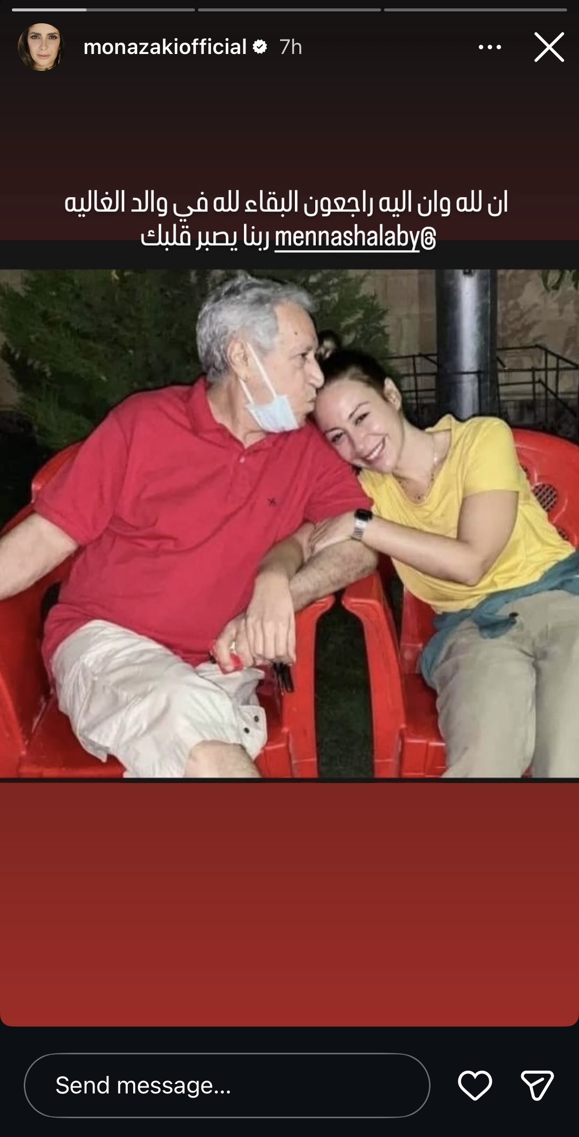نعت الفنانة منى زكي، والد الفنانة منة شلبي عبر حسابها الشخصي على موقع التواصل الاجتماعي انستجرام.