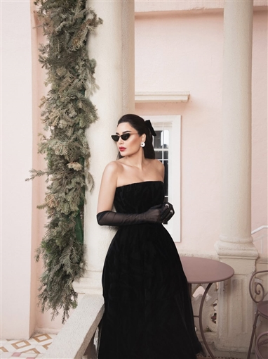 ظهرت سيرين بفستان أسود مكشوف الكتفين أبرز رشاقتها، ونسّقته مع قفازات شفافة سوداء أضافت لمسة من الفخامة، فيما اعتمدت مكياجًا هادئًا أبرز ملامح وجهها، ورفعت شعرها بالكامل إلى الخلف بأسلوب أنيق يتناسب مع الإطلالة.