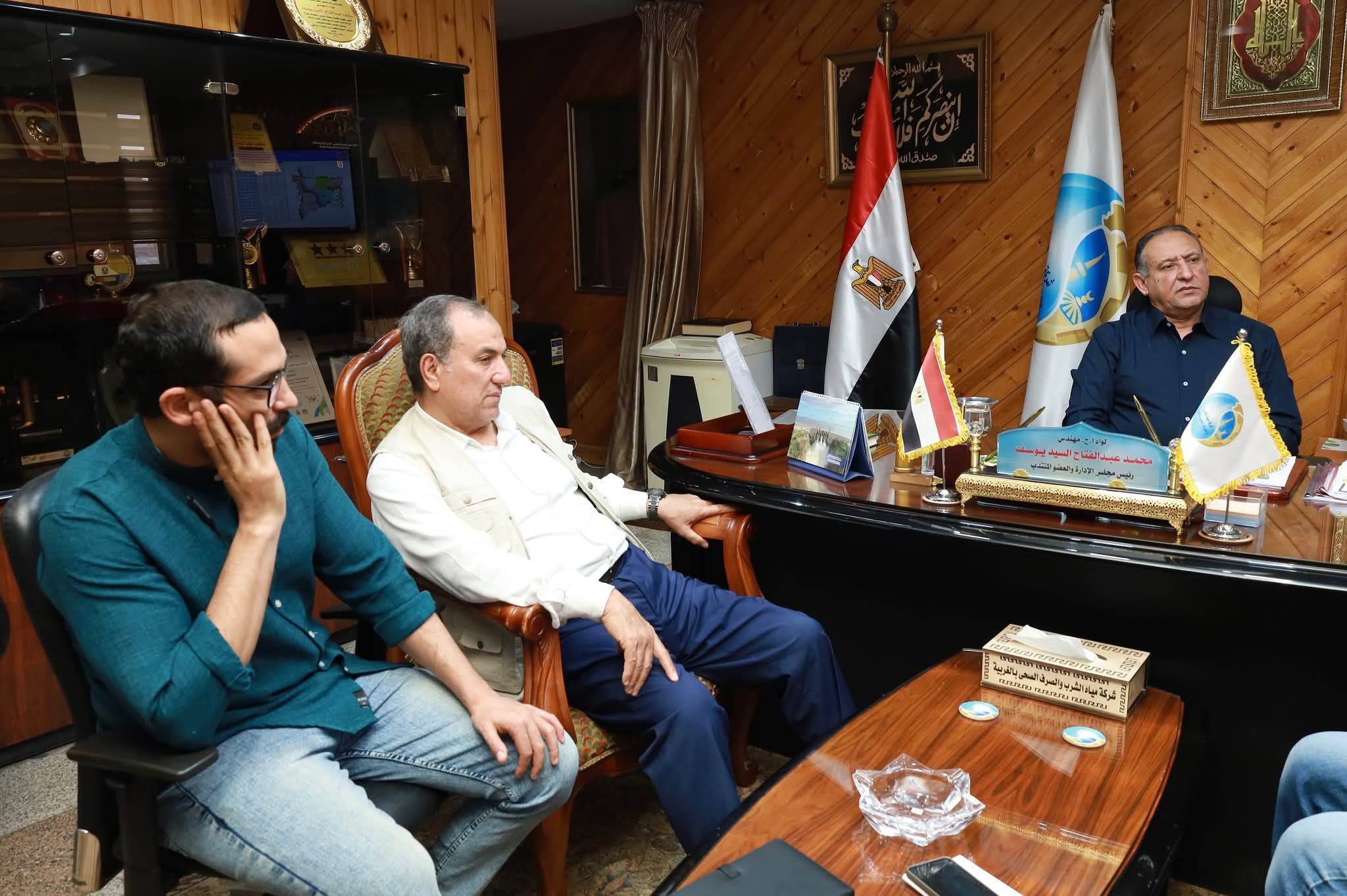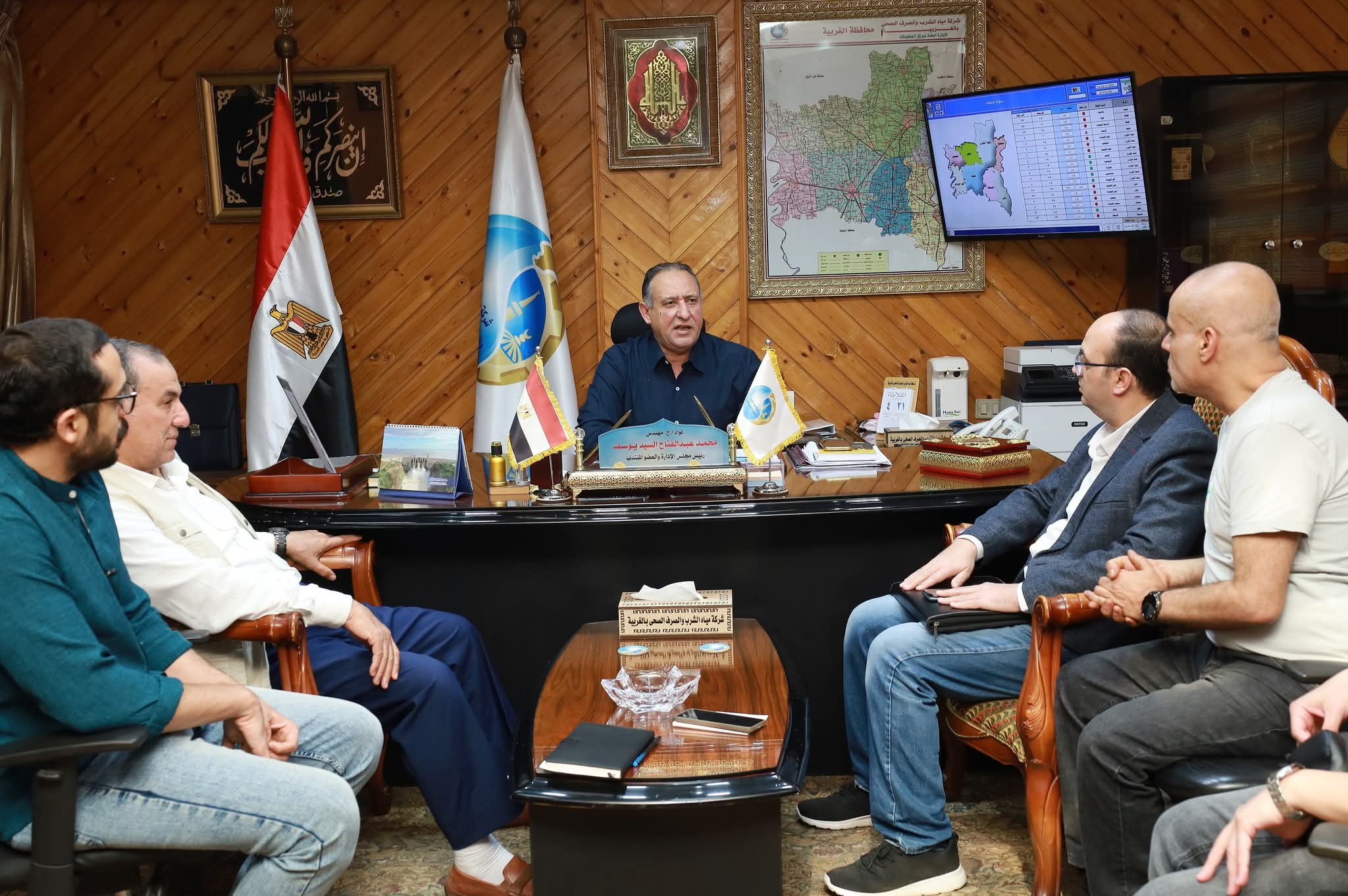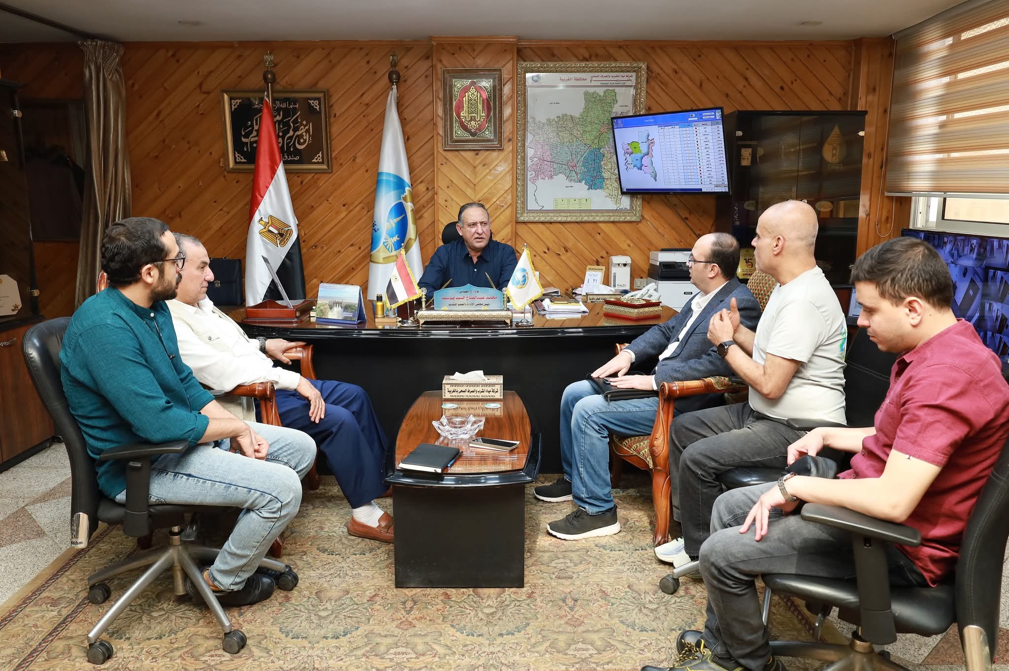 استقبل اللواء مهندس محمد عبدالفتاح - رئيس مجلس الادارة والعضو المنتدب التنفيذي لشركة مياه الشرب والصرف الصحي بالغربية، محمد عزام - مدير ادارة وحدة مشروع تحسين جودة المياه بمصرف كيتشنر - بالشركة القابضة لمياه الشرب والصرف الصحي وفريق عمل الادارة في حضور مدير الوحدة بشركة مياه الشرب والصرف الصحي بالغربية المهندس صلاح ياسين.