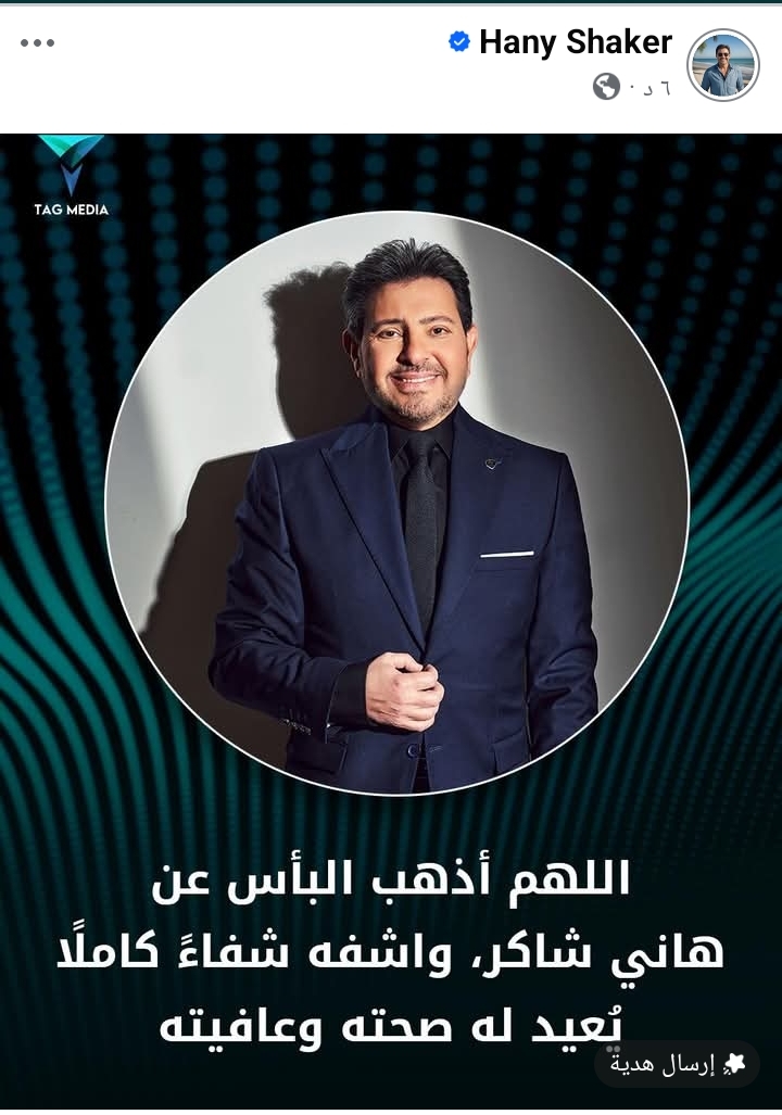وكتب الأدمن قائلًا: «اللهم أذهب البأس عن هاني شاكر واشفه شفاءً كاملا يعيد له صحته وعافيته».
