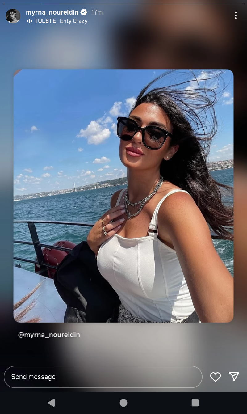 شاركت الفنانة ميرنا نور الدين متابعيها فيديو جديدا لها عبر صفحتها على موقع التواصل الاجتماعي إنستجرام من خلال خاصية الاستوري.