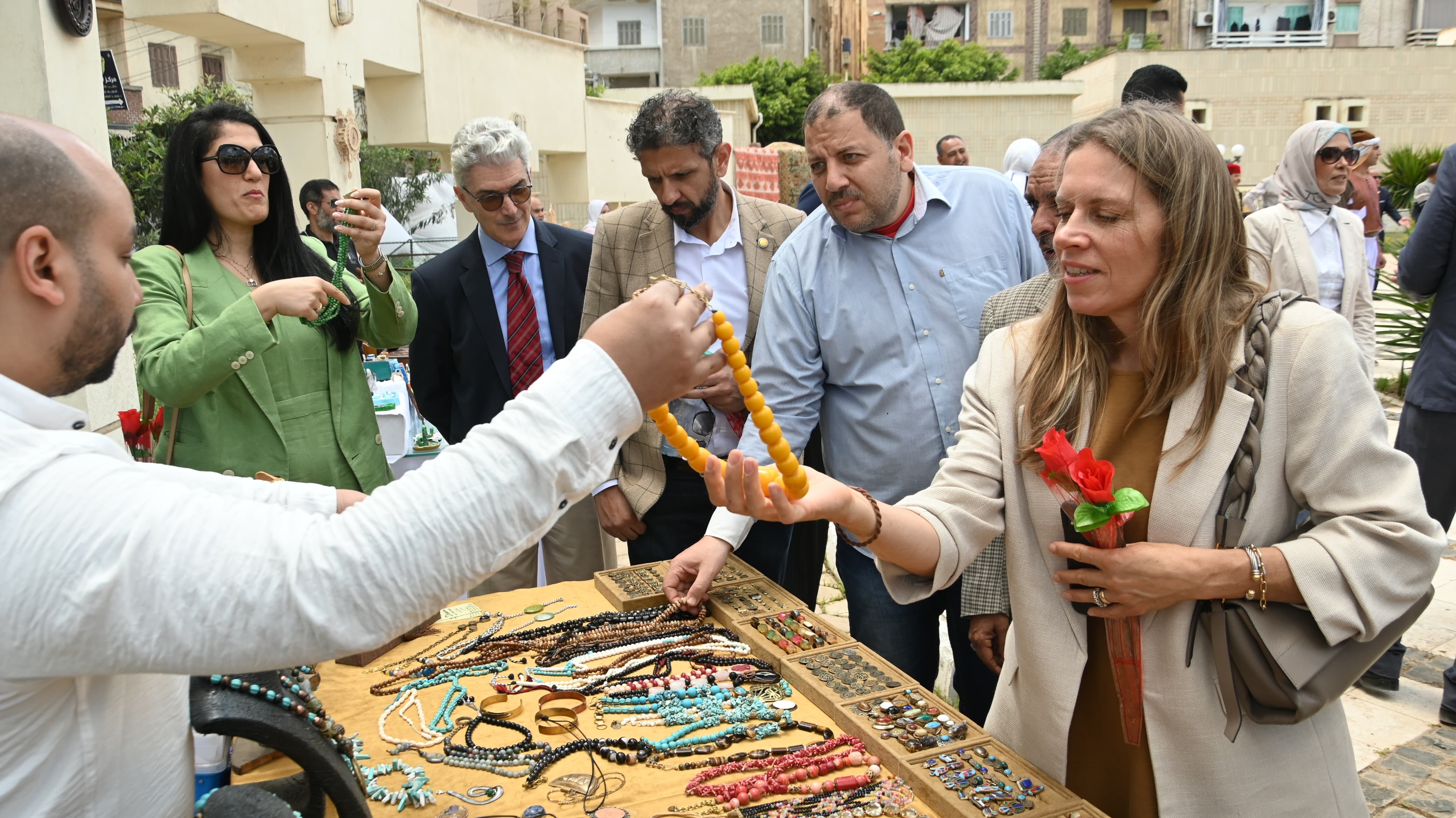 كما تفقدت المحافظ والوفد الأوروبي معرضي الفن التشكيلي والمشغولات اليدوية، والذي يعكس مهارة الحرفيين ويجسد روح التراث الأصيل، من خلال مجموعة متنوعة من المنتجات التي تشمل الأعمال الخشبية، وصناعة الفخار، والجريد، والأركت، وغيرها من الصناعات اليدوية.