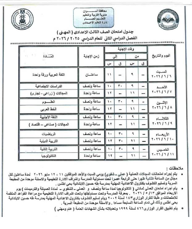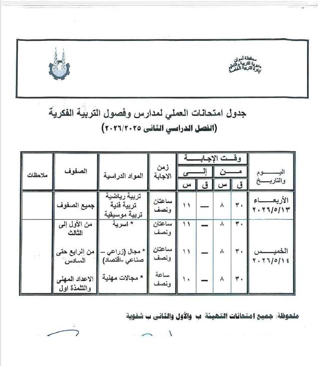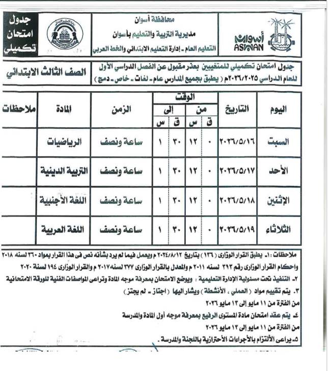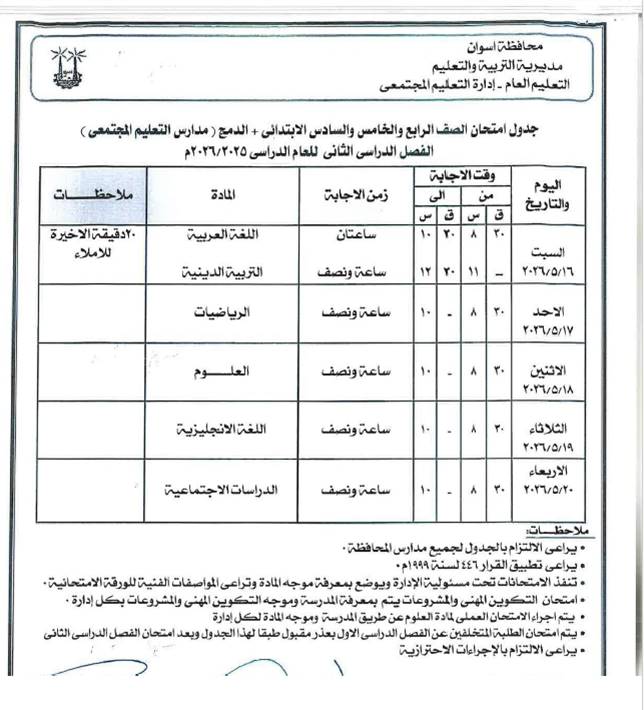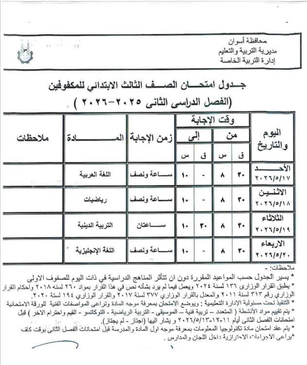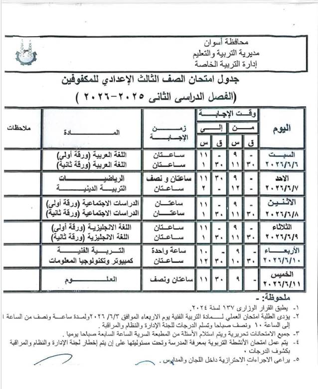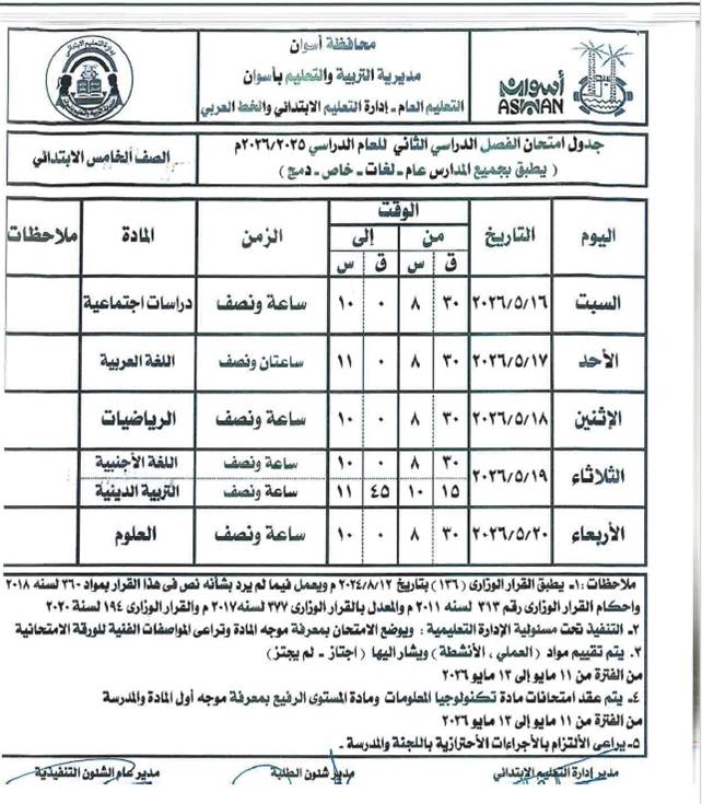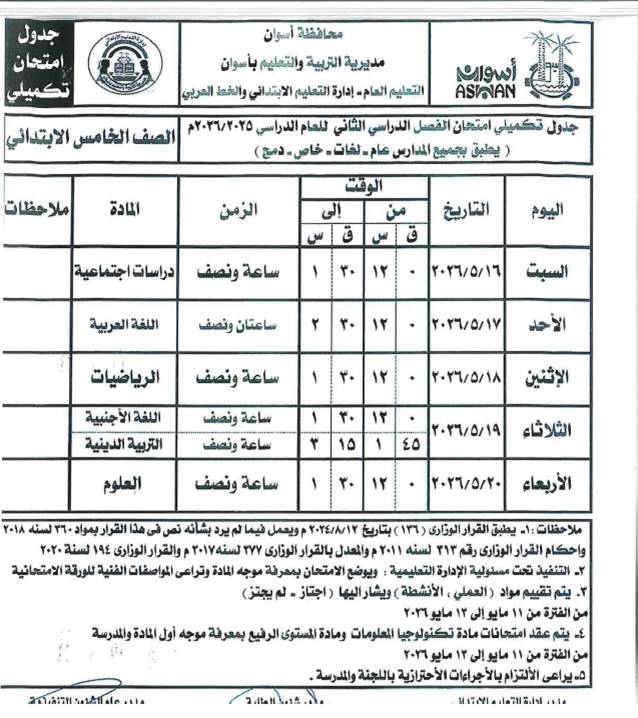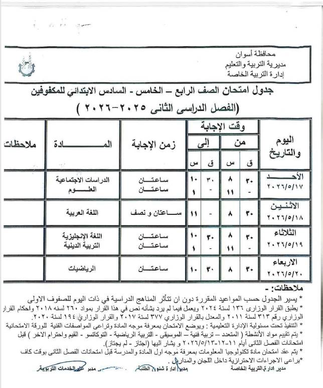 وشدد محافظ أسوان خلال إعتماده لخطة الإمتحانات على ضرورة تهيئة المناخ الملائم أمام الطلاب داخل اللجان، من خلال تكثيف أعمال النظافة العامة بمحيط المدارس، وتجهيز القوائم الإمتحانية بدقة، مع التأكد من توافر مبردات المياه، وتحسين وسائل التهوية والإضاءة، بما يضمن توفير بيئة مريحة وآمنة تساعد الطلاب على أداء إمتحاناتهم فى سهولة ويسر .