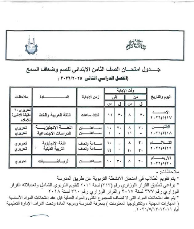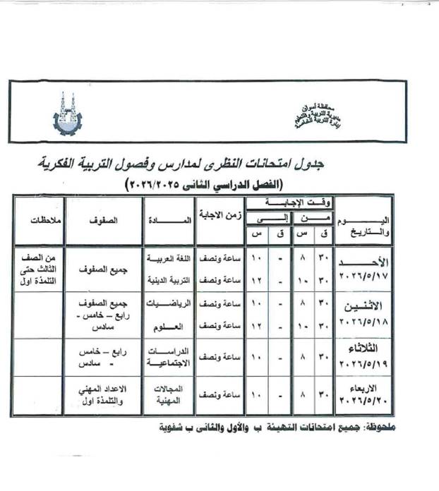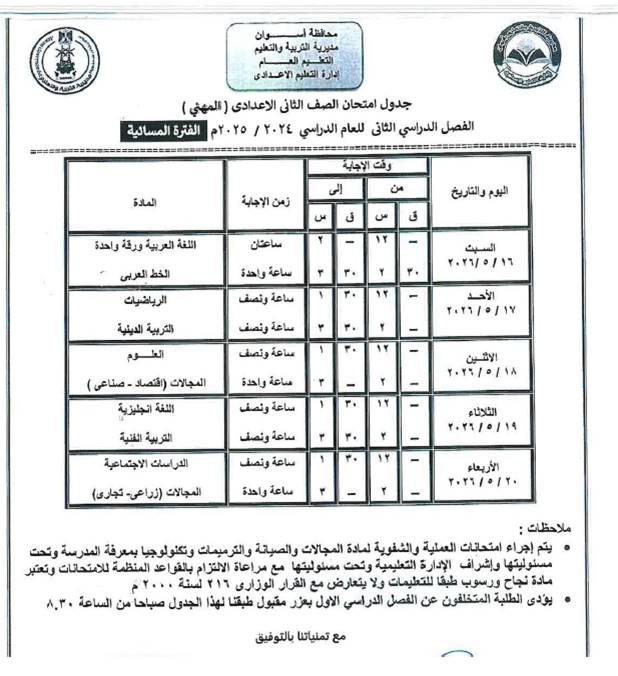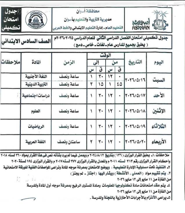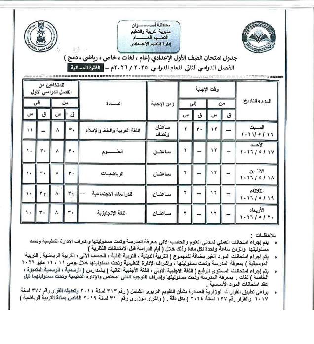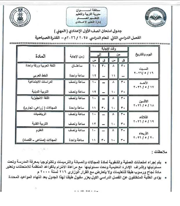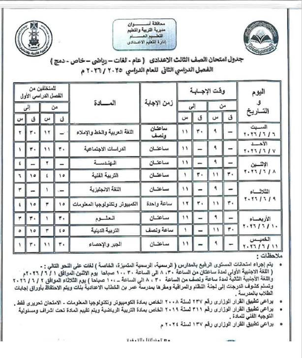 ومن المقرر أن تنطلق إمتحانات صفوف النقل للمرحلة الإبتدائية والإعدادية والثانوية والتعليم الفنى خلال الفترة من 16 إلى 24 مايو المقبل، فيما تعقد إمتحانات الشهادة الإعدادية خلال الفترة من 4 إلى 11 يونيو القادم ، وذلك وفق الخطة الزمنية التى إعتمدها المحافظ .