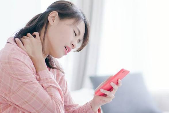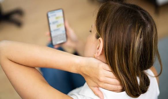 من أبرز المشكلات التي أشار إليها التقرير ما يُعرف بـ “رقبة التكنولوجيا” أو Tech Neck، وهي حالة تنتج عن الانحناء المستمر للنظر إلى الهاتف أو اللاب توب.