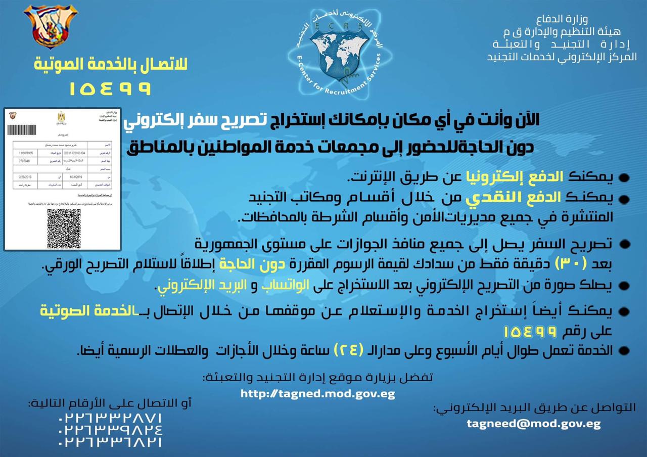 في إطار التحول الرقمي، أتاحت إدارة التجنيد والتعبئة إمكانية استخراج تصريح السفر عبر الإنترنت من خلال الموقع الرسمي: