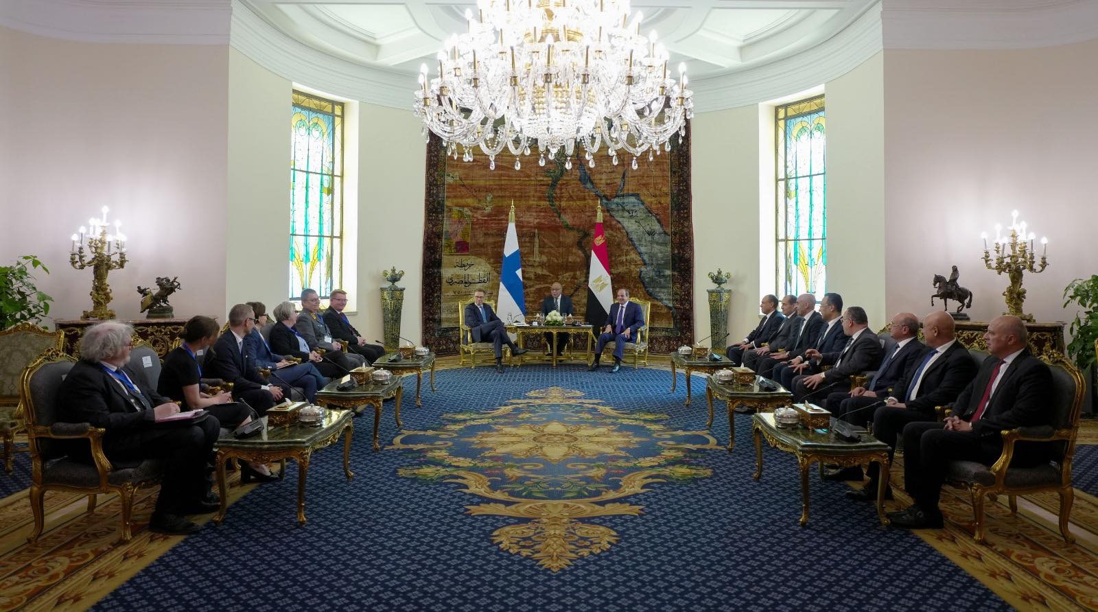 ومن جانبه، أعرب الرئيس الفنلندي عن اعتزازه بزيارة مصر ولقاء الرئيس، مؤكدًا تقديره لحُسن الاستقبال وكرم الضيافة، ومشيرًا إلى حرص الجانب الفنلندي على تطوير العلاقات الثنائية مع مصر والانتقال بها إلى آفاق أرحب استنادًا إلى ما تمتلكه مصر وفنلندا من مقومات تسمح بدفع العلاقات الثنائية في العديد من المجالات، فضلًا عن التشاور مع الرئيس إزاء الأزمات الإقليمية والدولية ذات الاهتمام المشترك.