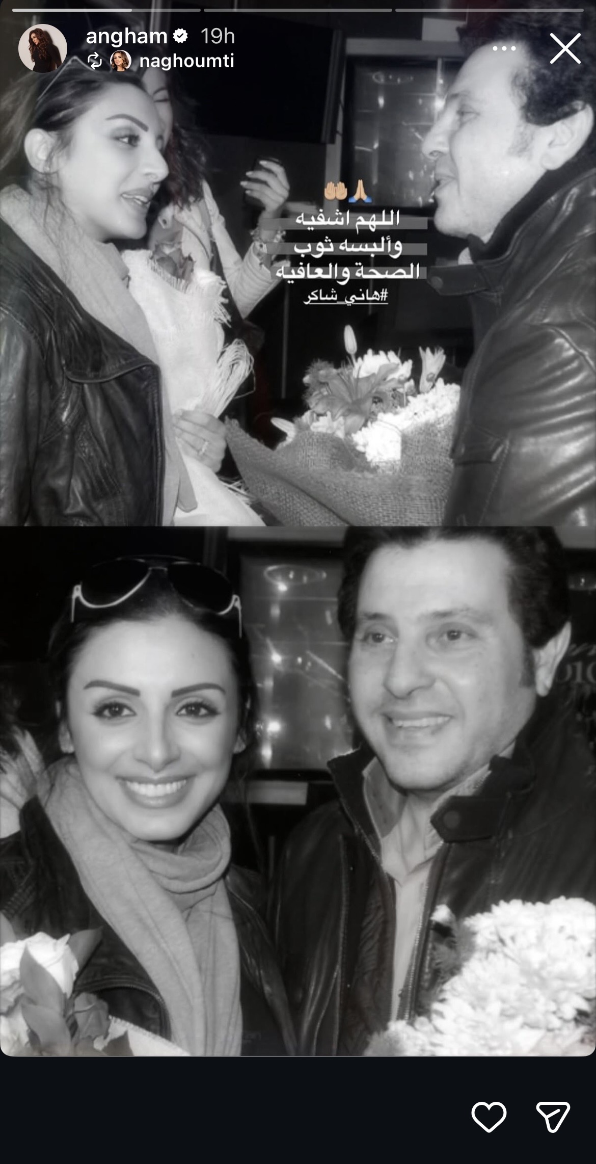 وكتبت أنغام عبر حسابها على انستجرام: “اللهم اشفيه وألبسه ثوب الصحة والعافية”.