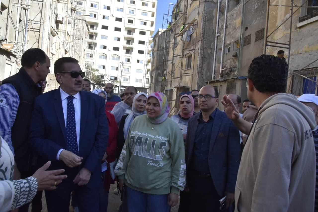 ورافق المحافظ خلال الجولة، الأستاذة شيماء العزبي رئيس حي المناخ، والمهندسة زينب الجباس مدير إدارة المشروعات بالمحافظة.