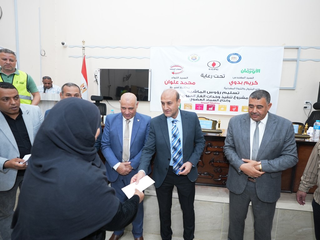 شهد اللواء محمد علوان، محافظ أسيوط، فعاليات تسليم 28 رأس ماشية للأسر الأولى بالرعاية بمركز البداري، ضمن مشروع الغاز الحيوي "البيوجاز" وإنتاج السماد العضوي، الذي تنفذه جمعية الأورمان – عضو التحالف الوطني للعمل الأهلي والتنموي – بتكلفة إجمالية تبلغ نحو 4 ملايين جنيه، وذلك تحت رعاية المهندس كريم بدوي وزير البترول والثروة المعدنية، وبالتعاون مع شركاء التنمية، في إطار خطة المحافظة لدعم وتنمية الثروة الحيوانية وتحقيق التنمية المستدامة وفق رؤية مصر 2030.