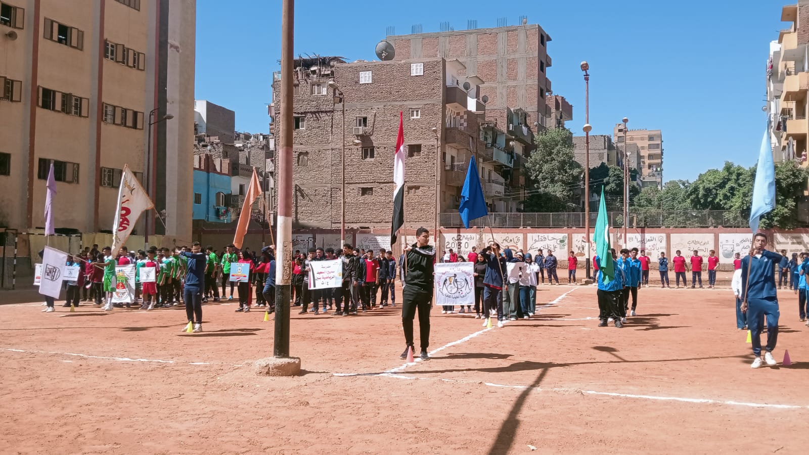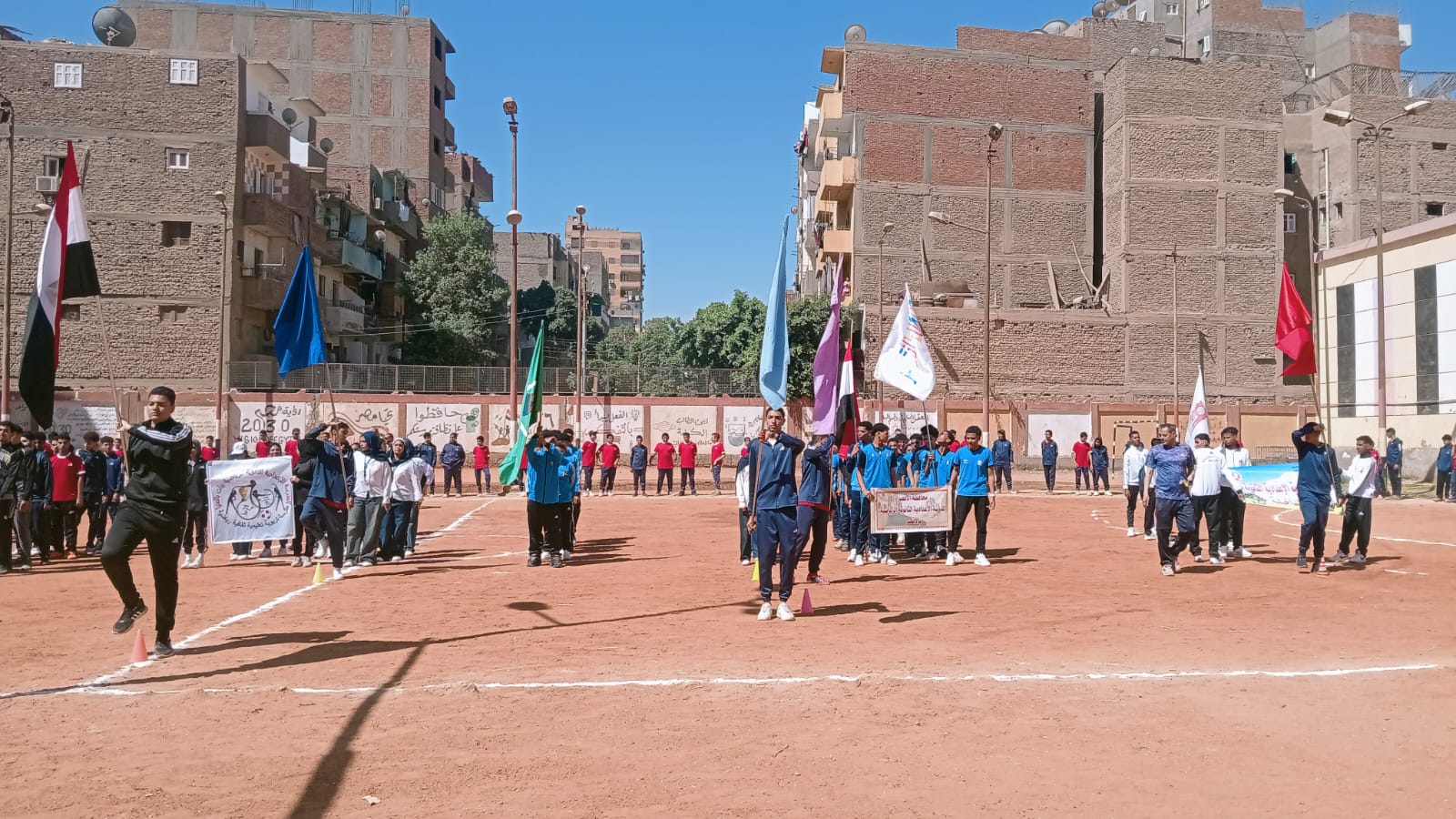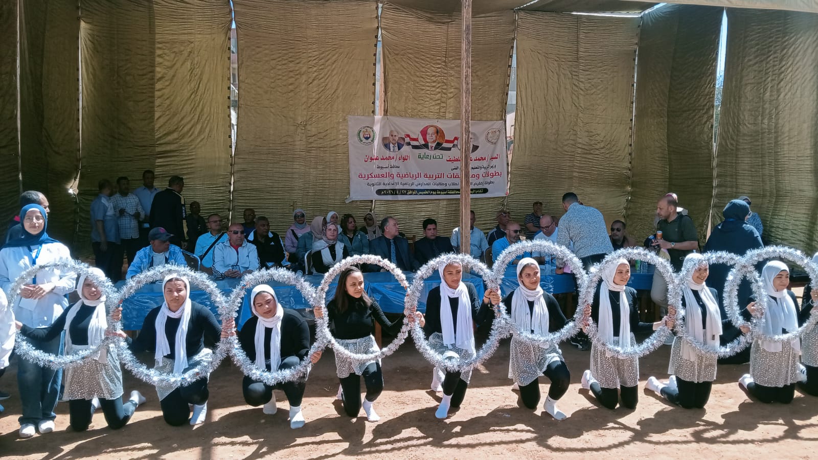 انطلقت الفعاليات بالسلام الوطنى ثم طابور العرض للفرق الرياضية المشاركة من محافظات الصعيد ثم التقاط الصور التذكارية.