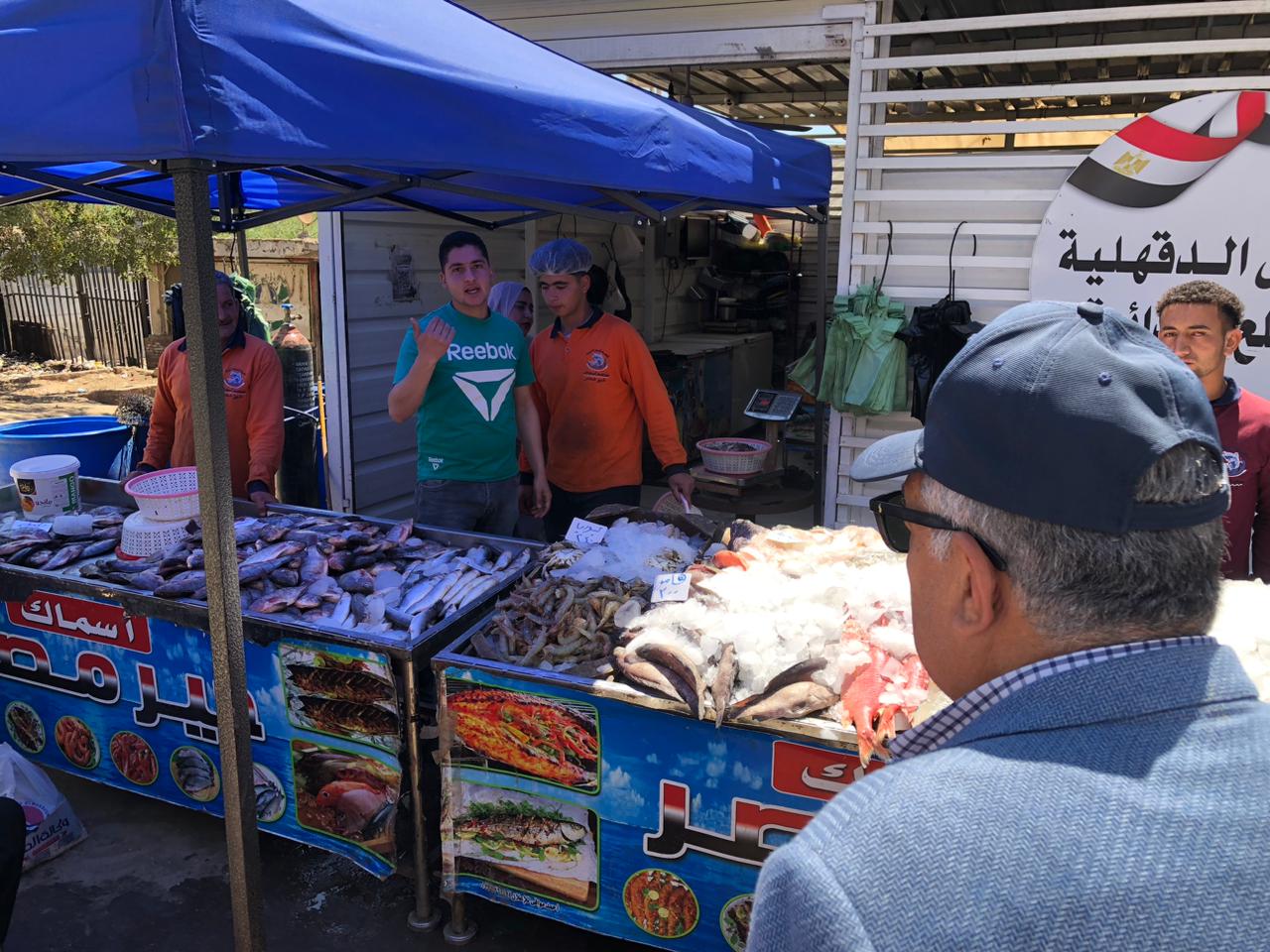 وتفقد المحافظ منفذ بيع الأسماك واللحوم، مشددا على النظافة العامة للمكان، كما تفقد محل بيع الخضراوات والفاكهة، مؤكدا على الالتزام بالأسعار المخفضة وجودة المعروضات والالتزام بالأسعار المعلنة، كما تفقد محل بيع البيض الأبيض والأحمر.
