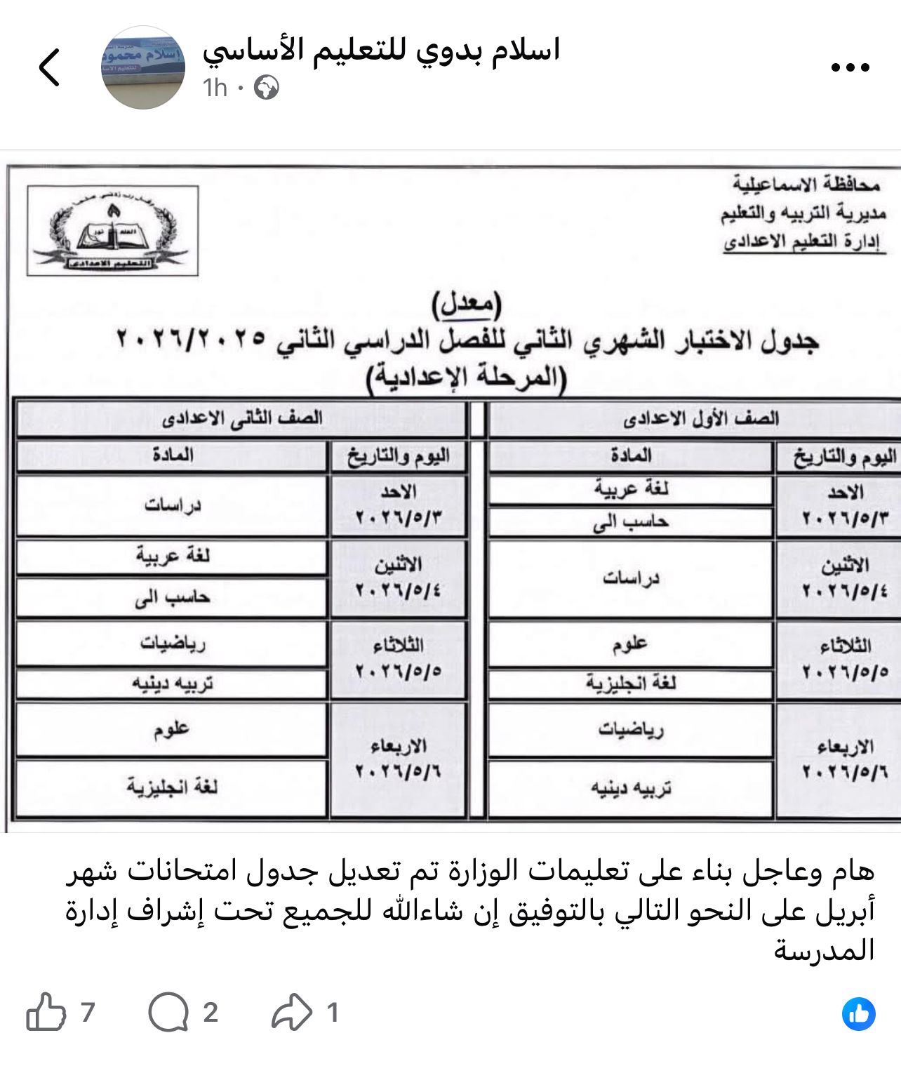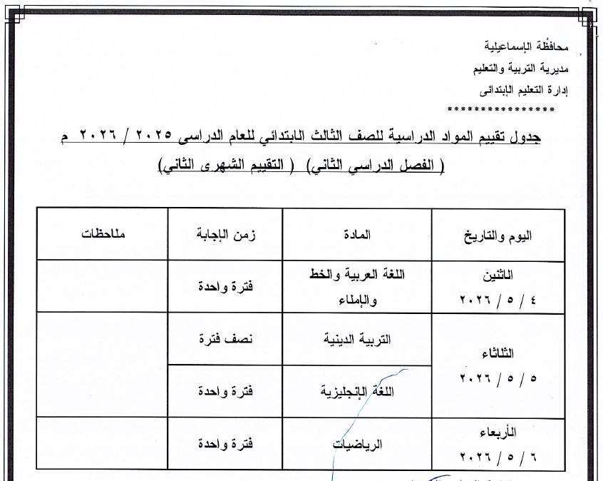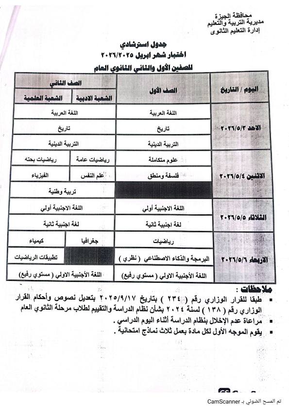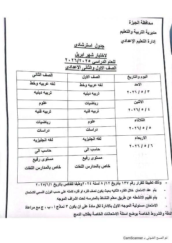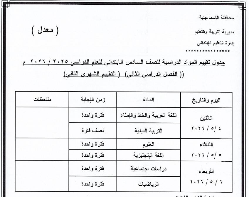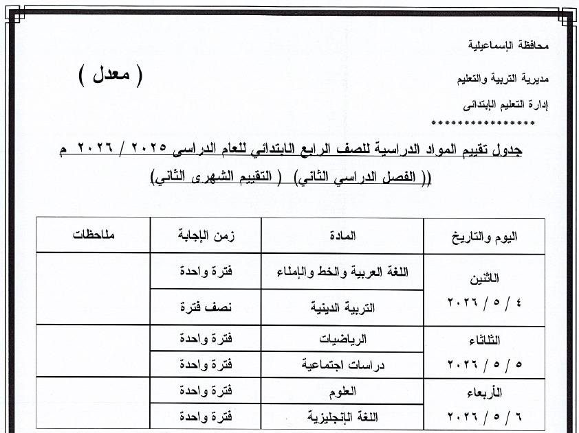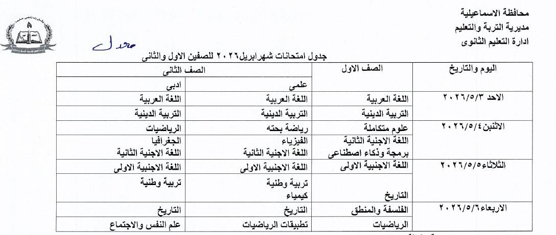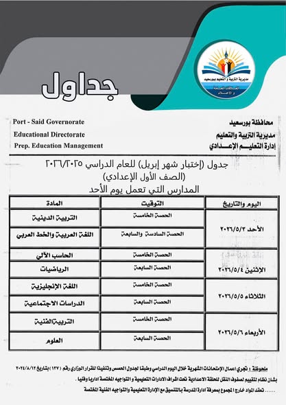 أعلنت مديريات التربية والتعليم ، جدول امتحانات شهر ابريل 2026 جميع الصفوف بعد تعديله بشكل مفاجئ بسبب اجازة عيد العمال